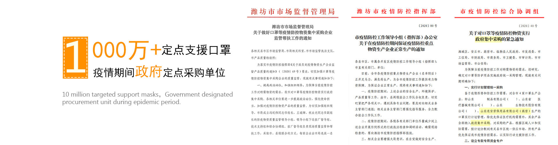 山東連安勞保用品有限公司成立于2015年,位于山東省高密市,東鄰青島,交通便利。公司占地面積3000平米,生產設備30多臺,員工50余名。最大日產量100萬件。擁有自己的檢測設備,原料進廠檢測,成品出廠檢測,質量嚴格把關。 公司主要產品為防護口罩,可生產:一次性平面口罩,KN95折疊口罩,KN95魚形口罩,KN95杯型口罩,紗布口罩,兒童平面一次性口罩,兒童KN95口罩,棉布口罩,防塵面罩過濾棉片(適用于3M等防塵面罩)。 目前所擁有的資質有:營業(yè)執(zhí)照,全國工業(yè)產品生產許可證,ISO9001,ISO14001,ISO45008 執(zhí)行的標準有 GB2626-2006(折疊KN95) GBT32610-2016(一次性平面) GB19083-2010(魚形KN95) EN149:ffp2(折疊) 2020年疫情期間,是本市首批政府征用防疫物資的企業(yè) 防護口罩 防塵口罩