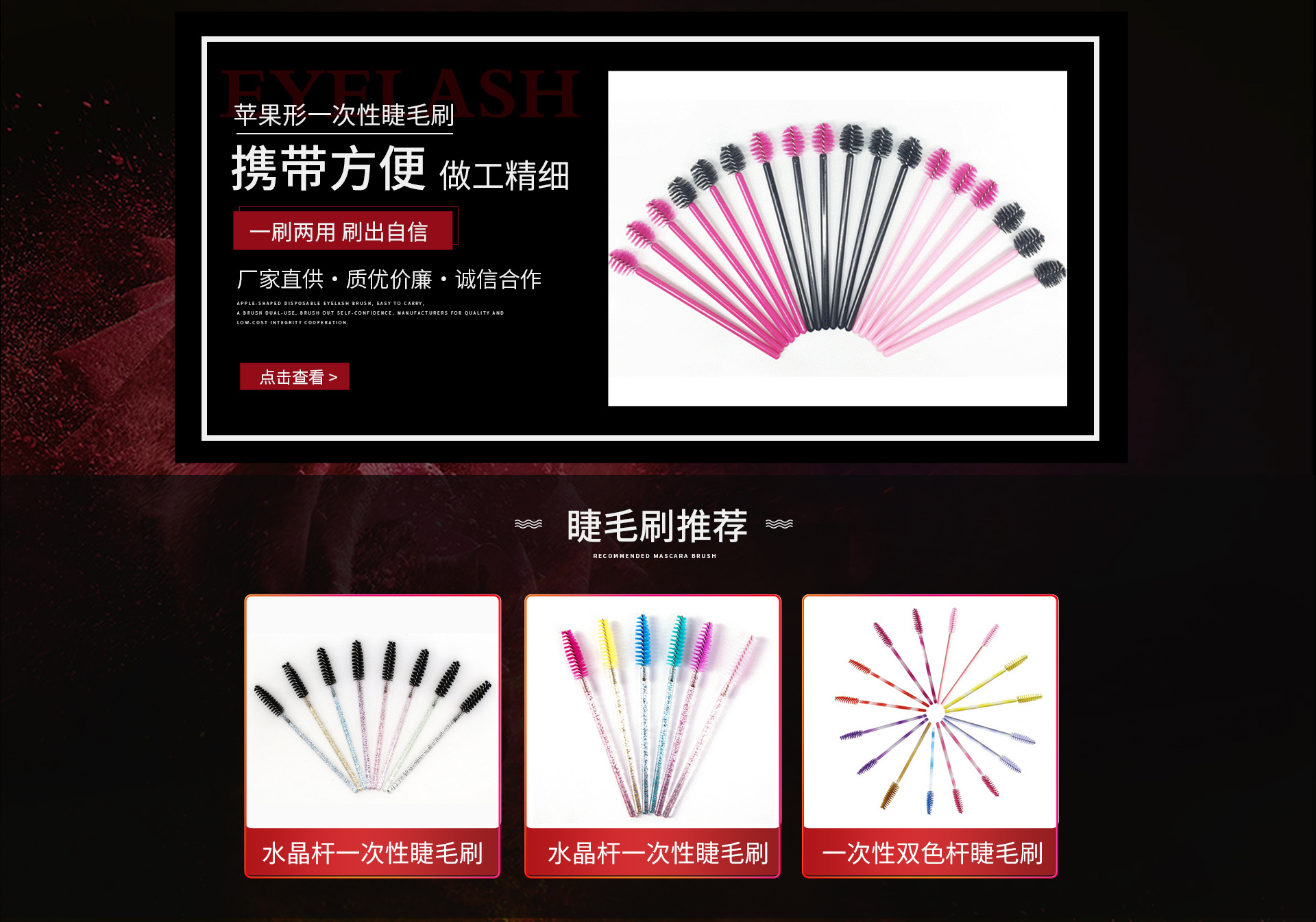 常州蓓琦麗日用品有限公司成立于2001年,坐落于美麗的江南歷史名城——江蘇省常州市,公司以“技術(shù)創(chuàng)新、誠信待人、合作共贏”為宗旨,主要生產(chǎn)唇彩棉頭、睫毛刷、硅膠睫毛刷、眼線、眼影、化妝綿等各類彩妝配件,宮頸刷、取樣刷、植絨采樣拭子、口腔DNA采集拭子、鼻咽拭子、宮頸取樣勺、宮頸刮片、壓舌板等一次性醫(yī)療耗材,牙間刷、牙線棒、齒間刷等一次性口腔潔具,清潔刷、內(nèi)窺鏡清潔刷、試管刷、奶瓶刷、各類異型刷等產(chǎn)品以及全自動制刷機的研發(fā)和制造,產(chǎn)品遠銷日韓、歐美等地區(qū)。公司目前擁有全自動制刷機92臺、注塑機22臺、擠出機2臺、植絨生產(chǎn)線7條,生產(chǎn)能力強,日產(chǎn)量大,可滿足各類不同客戶的需求。我們始終以客戶為中心,不段創(chuàng)新,精益求精,在茫茫的商海中獨樹一幟,堅持以優(yōu)良的品質(zhì)、優(yōu)惠的價格為您提供完善的服務(wù),真誠歡迎各界朋友前來洽談合作,一起攜手共創(chuàng)美好的明天