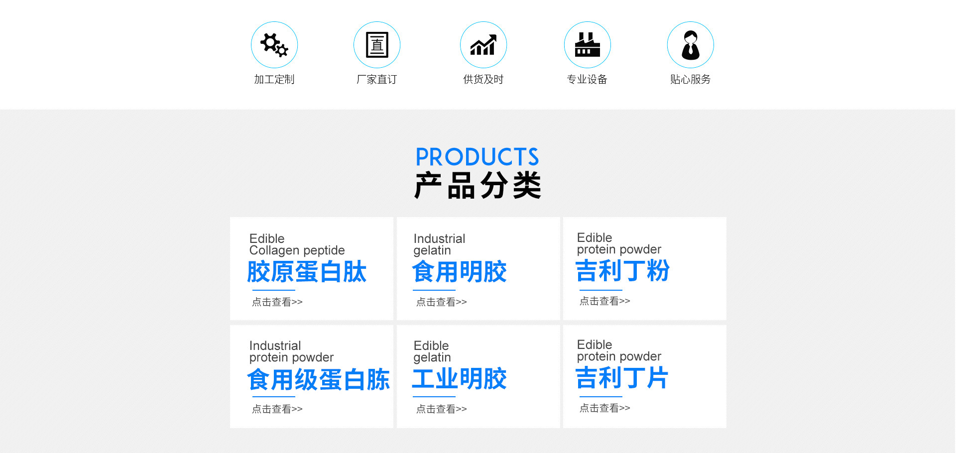 億威?。◤B門)生物科技有限公司是集生產(chǎn)銷售明膠、食用明膠、膠原蛋白粉、工業(yè)蛋白粉、蛋白胨,吉利丁片。等產(chǎn)品專業(yè)生產(chǎn)和加工的廠家,擁有完整、科學的質量管理體系。于2003年籌建,2005年正式建成。注冊資金500萬元,占地面積5000平方米,現(xiàn)有職工158人,其中高工10人,中級以上技術員35人。