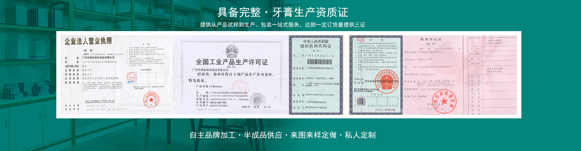 廣州市美如初化妝品有限公司成立于2006年,是一家專業(yè)的日化生產(chǎn)企業(yè),位于廣州市白云區(qū)均禾街道,地處廣州市著名風(fēng)景區(qū)白云山之畔。公司占地面積6000多平方米,車間、倉庫、宿舍建筑面積1000多平方米,公司地理位置十分優(yōu)越,交通便利,近臨廣花一級公路、機場高速公路、華南快速干線、白云國際機場、廣州北站等重要交通樞紐。 本公司是一家集科研、生產(chǎn)、營銷于一體的知名日化企業(yè),多年來一直致力于品牌的打造與發(fā)展,主要生產(chǎn)口腔護理用品和面貼膜護膚用品兩大類產(chǎn)品,擁有4條全自動牙膏生產(chǎn)線和5條面貼膜生產(chǎn)線,生產(chǎn)能力達到日產(chǎn)牙膏10噸以上和日產(chǎn)面貼膜30萬片。公司采用先進的工藝技術(shù)和原材料,嚴(yán)格按照國家的相關(guān)規(guī)定和執(zhí)行標(biāo)準(zhǔn),從嚴(yán)把控品質(zhì)關(guān),保證了產(chǎn)品品質(zhì)的穩(wěn)定。在品牌建設(shè)方面不惜重金投入,歷年聘請產(chǎn)品形象代言人有影視明星:王艷、溫碧霞,樹立了企業(yè)和品牌的高端形象。