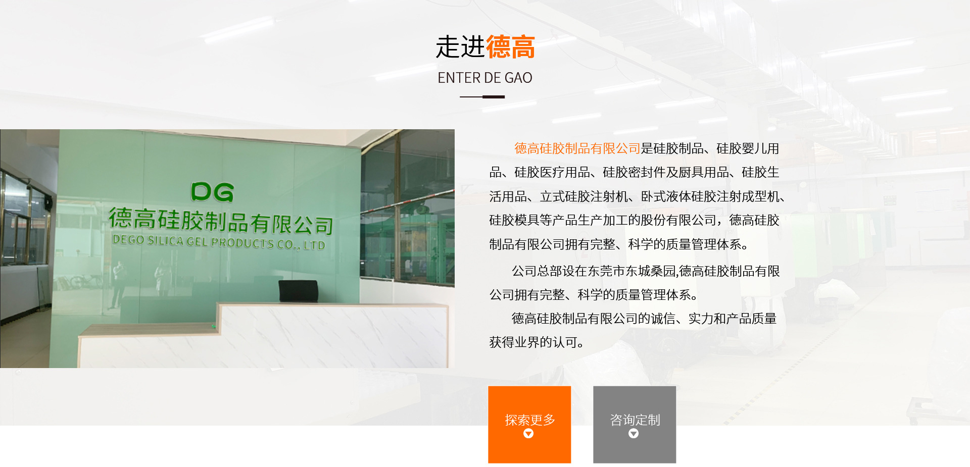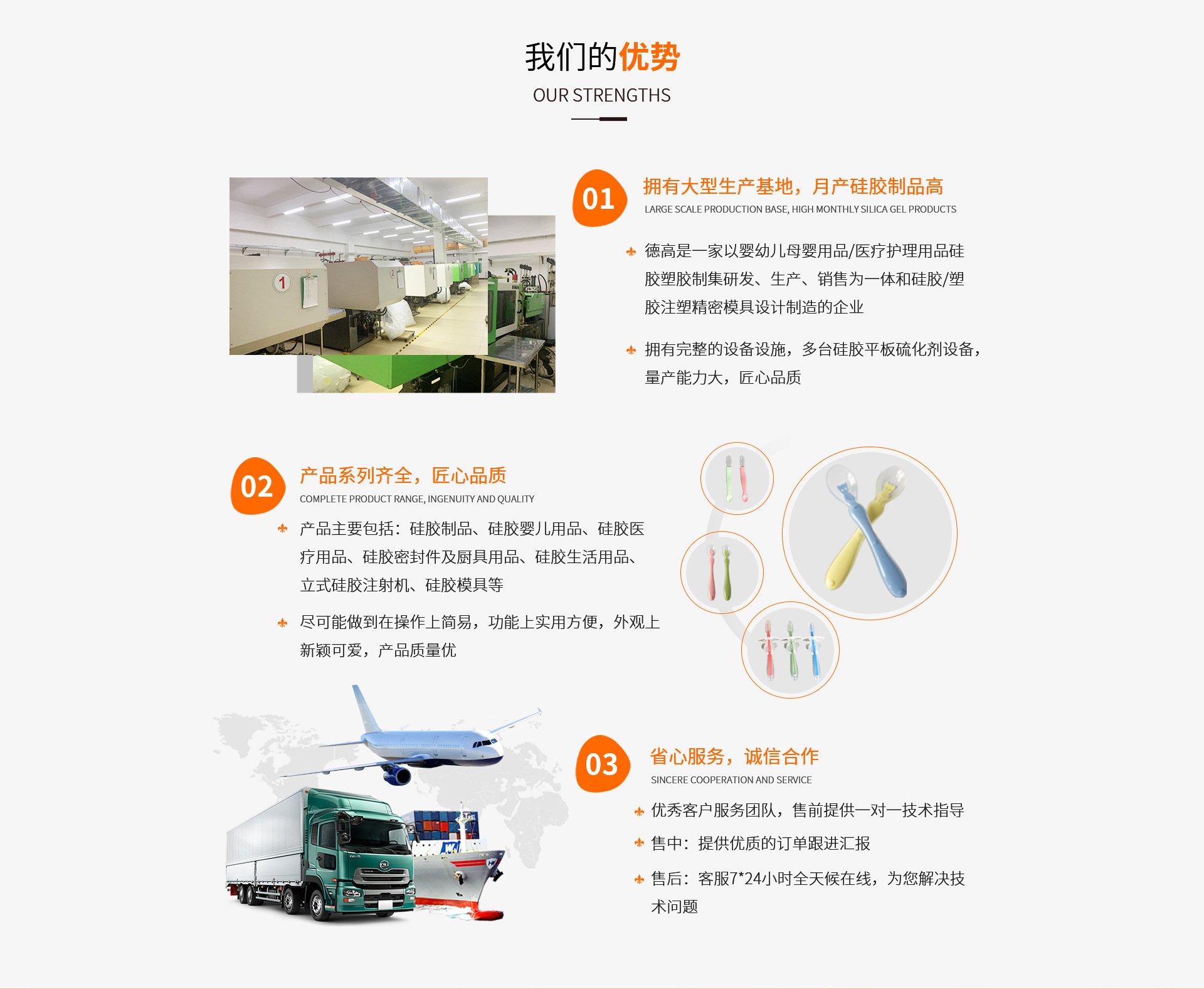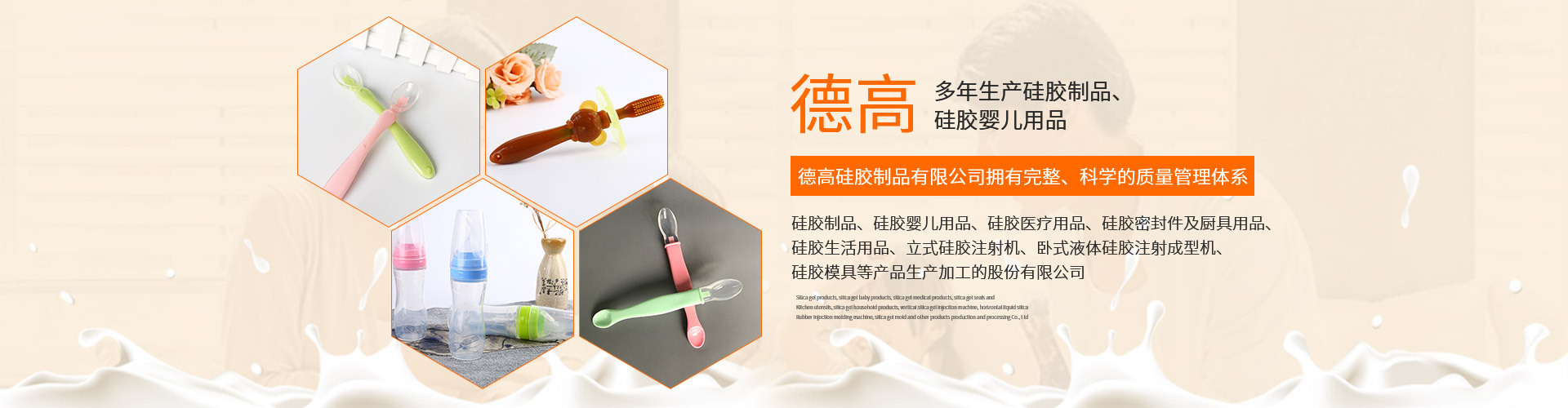 東莞市德高硅膠制品有限公司是硅膠奶瓶、奶嘴等產(chǎn)品專業(yè)生產(chǎn)加工的公司,擁有完整、科學(xué)的質(zhì)量管理體系。東莞市德高硅膠制品有限公司的誠信、實(shí)力和產(chǎn)品質(zhì)量獲得業(yè)界的認(rèn)可。歡迎各界朋友蒞臨參觀、指導(dǎo)和業(yè)務(wù)洽談。年交易額