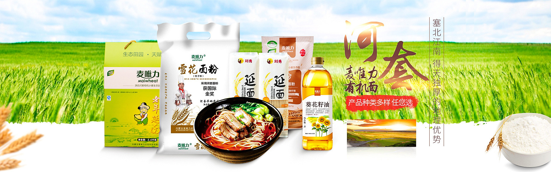 內(nèi)蒙古麥唯力農(nóng)牧科技有限公司成立于2011年,位于內(nèi)蒙古巴彥淖爾市。公司致力于有機(jī)小麥種植、精深加工、銷(xiāo)售及有機(jī)產(chǎn)品開(kāi)發(fā),以 “種植+加工+銷(xiāo)售”為一體的全產(chǎn)業(yè)鏈農(nóng)業(yè)企業(yè)。公司在內(nèi)蒙古巴彥淖爾市烏拉特中旗擁有8萬(wàn)畝小麥基地,年產(chǎn)小麥16000噸,其中8萬(wàn)畝為經(jīng)國(guó)家認(rèn)監(jiān)委認(rèn)證的有機(jī)小麥基地,每年認(rèn)證的有機(jī)小麥達(dá)5000噸,是內(nèi)蒙古河套地區(qū)最大的有機(jī)小麥種植基地。 同時(shí),公司利用小麥基地周邊得天獨(dú)厚的自然條件,在烏拉特中旗天然草場(chǎng)飼養(yǎng)了無(wú)公害自然放養(yǎng)的草坡羊,并向國(guó)家認(rèn)監(jiān)委申請(qǐng)認(rèn)證了30000只有機(jī)羊。 并且,公司還整合了巴彥淖爾優(yōu)質(zhì)雜糧及健康食用油等產(chǎn)品,將巴彥淖爾健康、綠色、營(yíng)養(yǎng)價(jià)值極高的農(nóng)產(chǎn)品推向千家萬(wàn)戶(hù)。