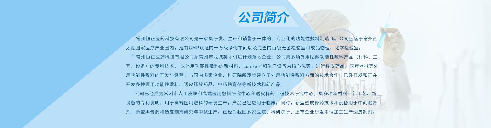 常州恒正醫(yī)藥科技有限公司坐落于常州市西太湖醫(yī)療產(chǎn)業(yè)孵化園內(nèi),是集研發(fā)、生產(chǎn)、銷售于一體的專業(yè)化外科醫(yī)療器械制造商。建有GMP認(rèn)證的十萬級凈化車間以及完善的無菌檢驗室和成品物理檢驗室。依托北京化工大學(xué)、南京中醫(yī)藥大學(xué)、南京藥科大學(xué)人才技術(shù)優(yōu)勢,擁有一支以醫(yī)學(xué)、藥學(xué)、高分子材料、機械加工、營銷方面不同學(xué)科交叉結(jié)合的高素質(zhì)研發(fā)團隊。集多項外用貼敷產(chǎn)品(材料、工藝、設(shè)備)的專利技術(shù)。公司 “以外用貼敷制劑新材料、成型技術(shù)和生產(chǎn)設(shè)備為核心優(yōu)勢,進行經(jīng)皮藥品、醫(yī)療器械等外用貼敷產(chǎn)品”的開發(fā)經(jīng)營。與國內(nèi)多家企業(yè)、科研院所建立了外用貼敷制劑方面的技術(shù)合作。已經(jīng)開發(fā)和正在開發(fā)多種醫(yī)用敷料、透皮釋放藥品、中藥貼膏劑等新技術(shù)和新產(chǎn)品。 常州恒正醫(yī)藥科技有限公司主營防塵口罩、水膠體敷料、舒鼻貼、關(guān)節(jié)保健貼、醒神保健露等。公司秉承“顧客至上,銳意進取”的經(jīng)營理念,堅持“客戶第一”的原則為廣大客戶提供優(yōu)質(zhì)的服務(wù)。