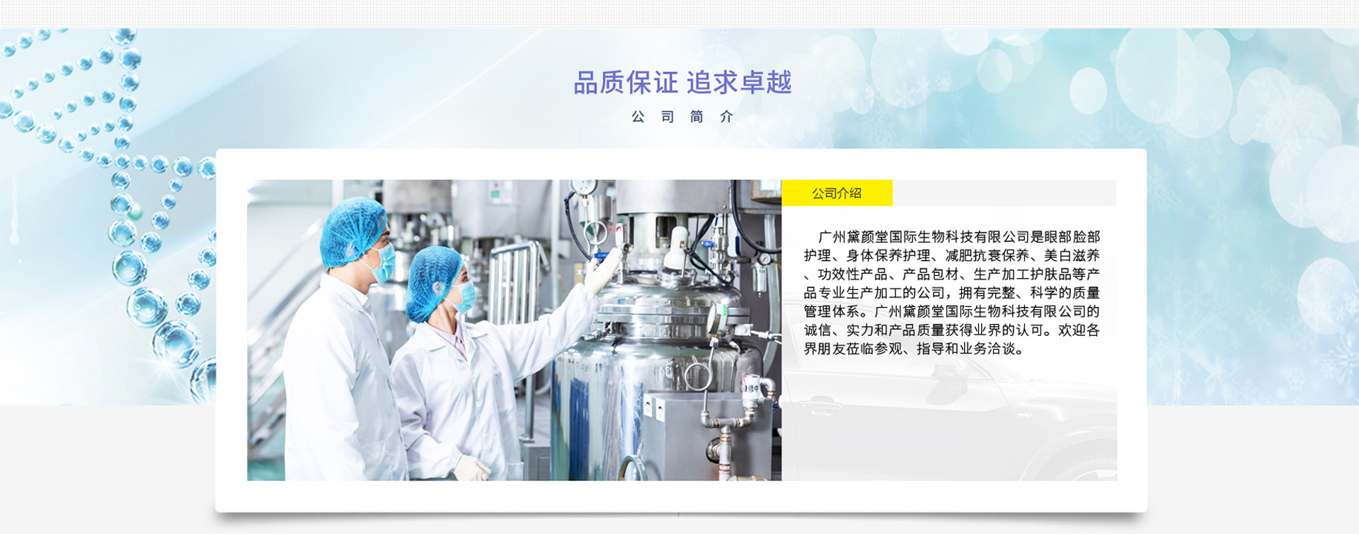 廣州黛顏堂國(guó)際生物科技有限公司是專業(yè)藥妝化妝品oem代加工廠家,主要產(chǎn)品有:面膜、洗面奶、護(hù)膚膏霜、化妝品套裝、化妝品、美容產(chǎn)品、護(hù)膚品、洗護(hù)產(chǎn)品、化妝品包材等,擁有完整、科學(xué)的質(zhì)量管理體系。廣州頂美國(guó)際化妝品有限公司的誠(chéng)信、實(shí)力和產(chǎn)品質(zhì)量獲得業(yè)界的認(rèn)可。歡迎各界朋友蒞臨參觀、指導(dǎo)和業(yè)務(wù)洽談。