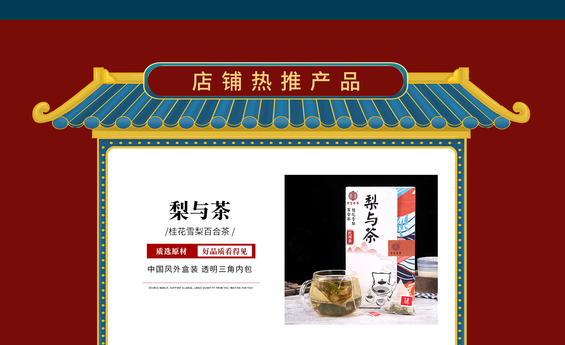 安徽開寶本草健康產業(yè)有限公司擁有含茶制品及代用茶(袋泡茶)生產線兩條,茶研究實驗室、專業(yè)包裝設計團隊。可以一條龍為您提供 功效配方實驗、袋泡茶加工、代用茶加工、包裝設計等服務。 我公司可生產單囊袋泡茶、內外袋袋泡茶、雙囊袋泡茶、三角包袋泡茶等。 所加工產品可提供SC生產許可證)、執(zhí)行標準、可備案產品包裝,讓您只需要安心銷售,產品的交給我們! 為給更多的企業(yè)提供更加方便的服務,并協(xié)助辦理備案等相關事宜,包括 產品條形碼,包裝等等全套一條龍服務