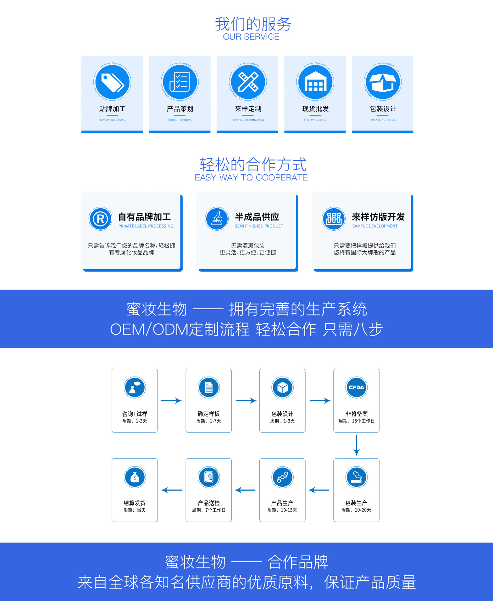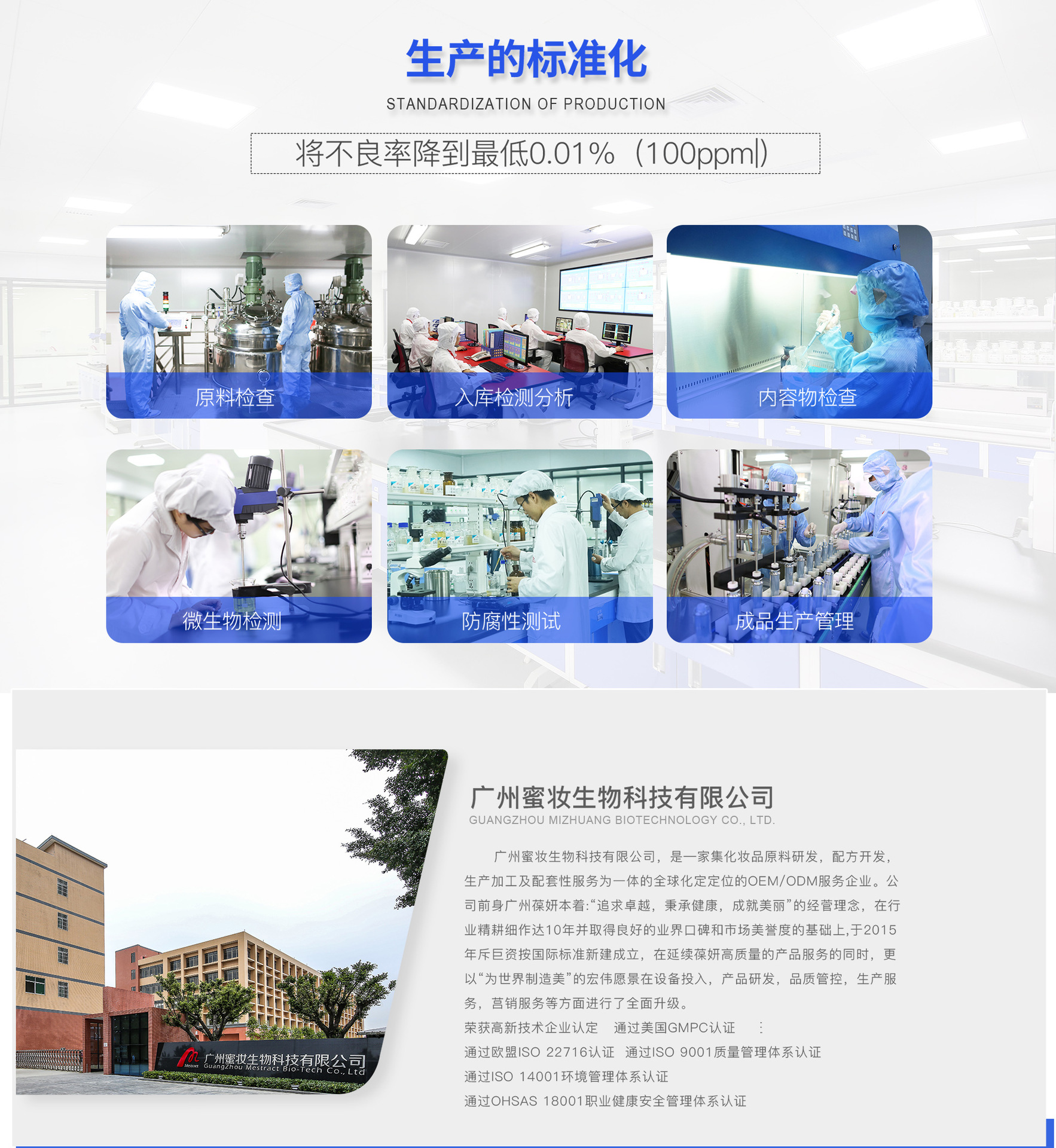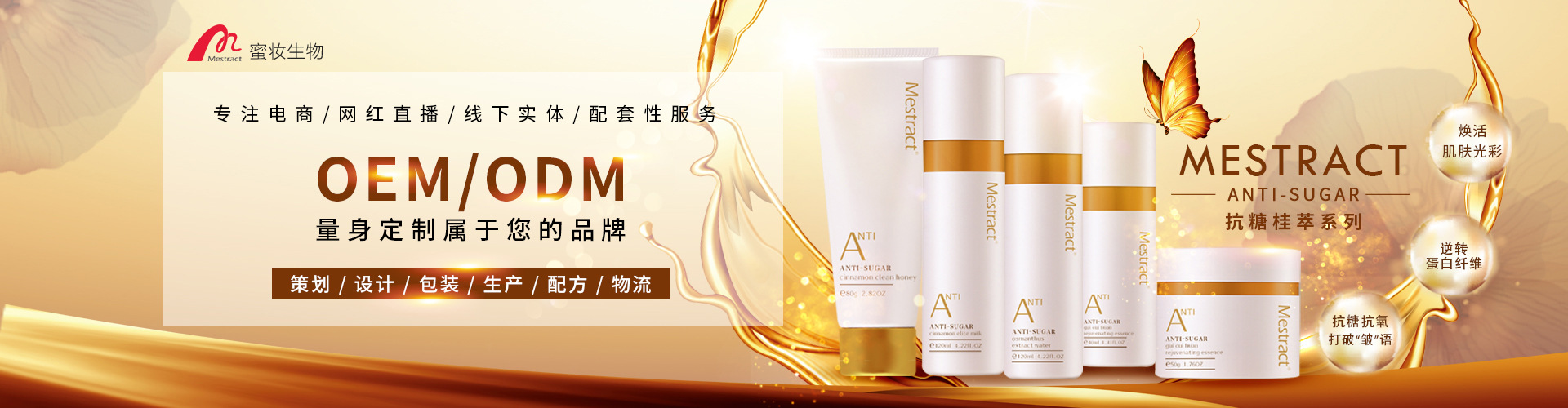 廣州蜜妝生物科技有限公司,是一家集化妝品原料研制、配方開(kāi)發(fā)、加工生產(chǎn)及配套性服務(wù)為一體的全球化妝OEM/ODM服務(wù)企業(yè)。公司繼承兄弟企業(yè)葆妍生物科技的十幾年實(shí)力的積累,本著“追求卓越,秉承健康,成就美麗”的經(jīng)營(yíng)理念,經(jīng)過(guò)十多年的不斷發(fā)展完善與技術(shù)提升,在行業(yè)內(nèi)頗具口碑和影響力。 在葆妍十幾年的基礎(chǔ)上成立的蜜妝,延續(xù)高質(zhì)量產(chǎn)品服務(wù)的同時(shí),在研發(fā)、生產(chǎn)、品控、營(yíng)銷(xiāo)等多方面升級(jí),配備雄厚的科研力量,引進(jìn)先進(jìn)生產(chǎn)設(shè)備,遵循嚴(yán)苛的品質(zhì)管理標(biāo)準(zhǔn),提供專業(yè)的全方位營(yíng)銷(xiāo)服務(wù),最大程度地實(shí)現(xiàn)資源整合,致力于成為世界優(yōu)秀化妝品工廠。 蜜妝源于對(duì)亞洲人肌膚和中國(guó)市場(chǎng)的透徹理解,秉承“為世界制造美”的偉大愿景,堅(jiān)持“誠(chéng)信經(jīng)營(yíng),追求卓越,科技創(chuàng)新,以人為本”的核心價(jià)值觀,通過(guò)對(duì)基礎(chǔ)設(shè)備的投資,生物和納米技術(shù)的應(yīng)用研究創(chuàng)新,以及服務(wù)實(shí)力的不斷升級(jí),努力為終端顧客提供價(jià)值。