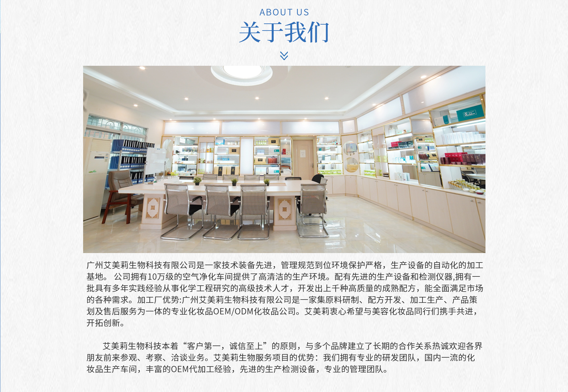 艾美莉生物服務(wù)項(xiàng)目的優(yōu)勢:我們擁有專業(yè)的研發(fā)團(tuán)隊(duì),國內(nèi)一流的化妝品生產(chǎn)車間,豐富的OEM代加工經(jīng)驗(yàn),先進(jìn)的生產(chǎn)檢測設(shè)備,專業(yè)的管理團(tuán)隊(duì)。
