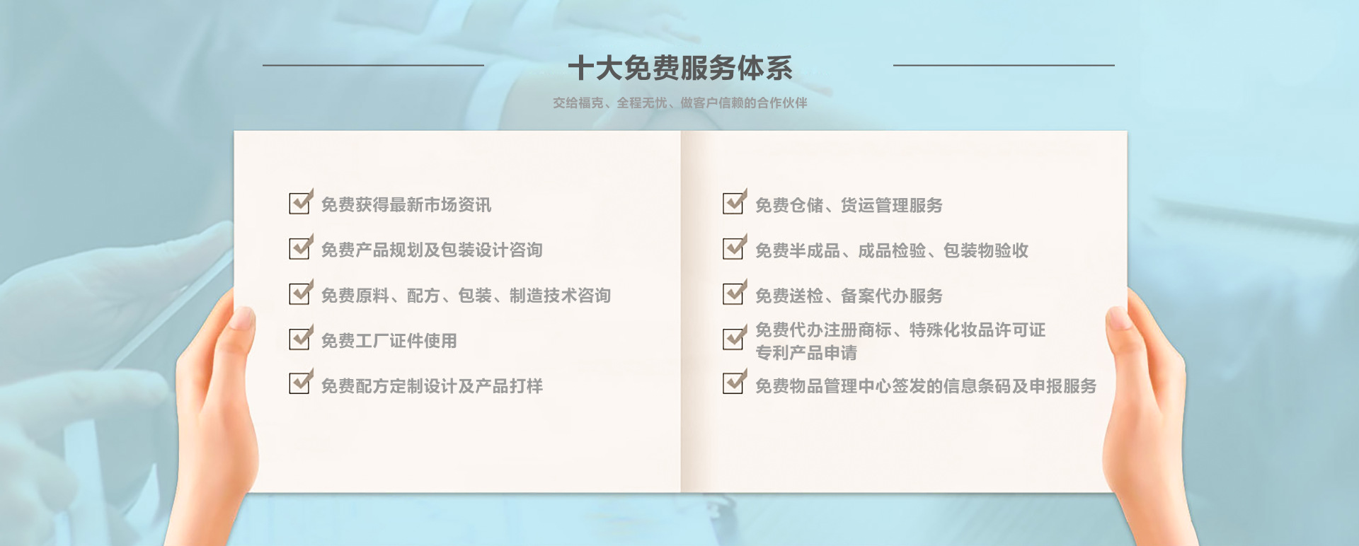 ??怂帢I(yè)是一家集化妝品的研發(fā)、生產(chǎn)、銷售、服務,培訓于一體的大型化妝品公司。公司位于交通便利的廣州市白云區(qū)龍歸南嶺,占地面積14000平方米,是國內(nèi)為數(shù)不多獲得美標GMPC認證及ISO22716證書的企業(yè),工廠采用10萬級GMPC標準建造的車間,無污染化設計,并擁有9條國際化的面膜,膏霜、原液,洗滌等產(chǎn)品全自動生產(chǎn)流水線,擁有高效的產(chǎn)能,可滿足巨大的市場需求。公司主要以化妝品的研究、開發(fā)為主。為提供客戶OEM和ODM的專業(yè)服務,能針對客戶所需的產(chǎn)品規(guī)格和需求,進行開發(fā)和設計,以高品質、安全、有效的產(chǎn)品滿足客戶的需求。 公司不斷引進具有尖端生物高科技的產(chǎn)品供應源,秉承中國傳統(tǒng)的美容與養(yǎng)生文化,融合西方高科技的美容營養(yǎng)學,公司目前已超出概念競爭的舊有格局,進入到里程碑式的發(fā)展階段,并逐漸樹立專業(yè)美容的競爭標尺。 同時,高素質的人才隊伍和制度化的管理成就了??怂帢I(yè)的戰(zhàn)略目標。
