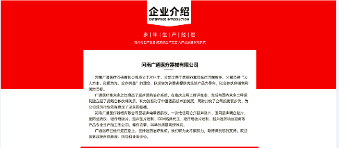河南廣通醫(yī)療器械有限公司成立于2014年,總部坐落于美麗的宜居城市河南新鄉(xiāng),依托中原地區(qū)自然和人文資源,已經(jīng)發(fā)展成為一家集醫(yī)療器械、耗材、保健品、藥妝、醫(yī)療衛(wèi)生用品等為一體的現(xiàn)代化科技公司,公司始終堅持“以人為本、以質(zhì)為先、合作共贏”的理念,以切實為消費者提供品質(zhì)優(yōu)良的產(chǎn)品為導(dǎo)向,以合作伙伴銷售利潤為目標。 廣通醫(yī)療集眾家之長推出了超聲透藥系統(tǒng),獲得了國內(nèi)眾多專家的肯定,在臨床應(yīng)用上好評如潮,先后與國內(nèi)眾多醫(yī)院建立起了穩(wěn)固的戰(zhàn)略合作伙伴關(guān)系,有力的推動了中醫(yī)透藥技術(shù)的發(fā)展,同時加快了公司的發(fā)展步伐,為公司成為行業(yè)先鋒奠定了堅實的基礎(chǔ)。 河南廣通醫(yī)療器械有限公司是超聲電導(dǎo)透藥儀、一次性使用治療超聲墊片、醫(yī)用超聲耦合貼片、中醫(yī)定向透藥儀、理療電極片、超聲墊片定制、OEM貼牌代工、理療電極片定制、超聲透藥項目招商等產(chǎn)品專業(yè)生產(chǎn)加工的公司。