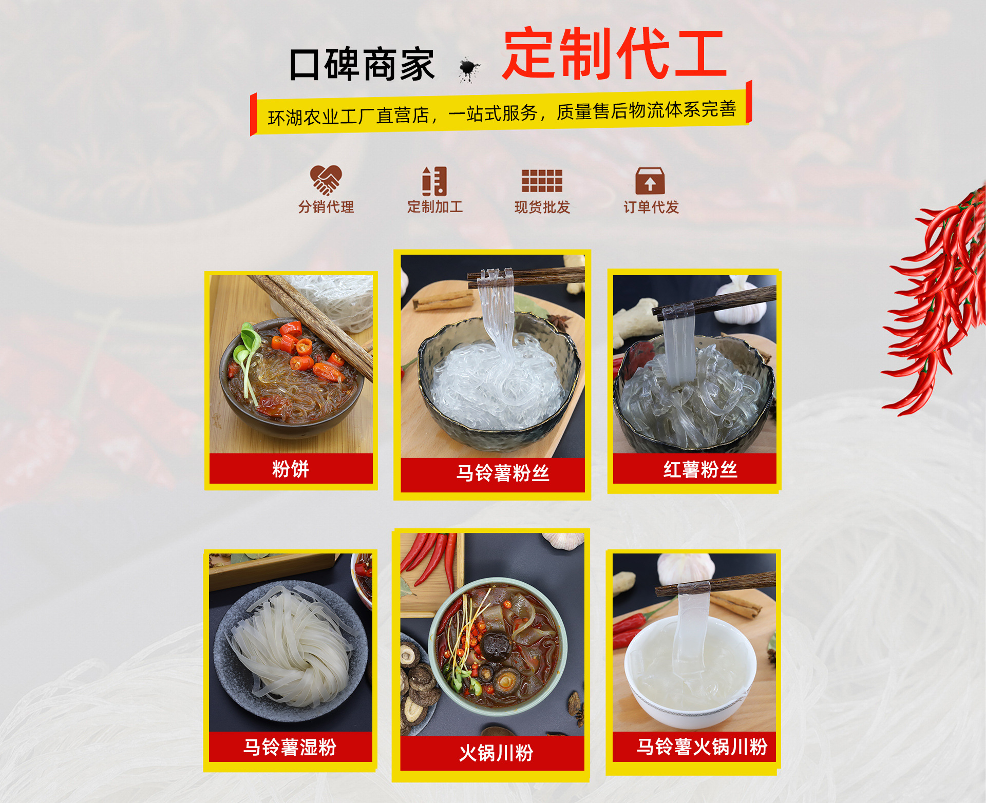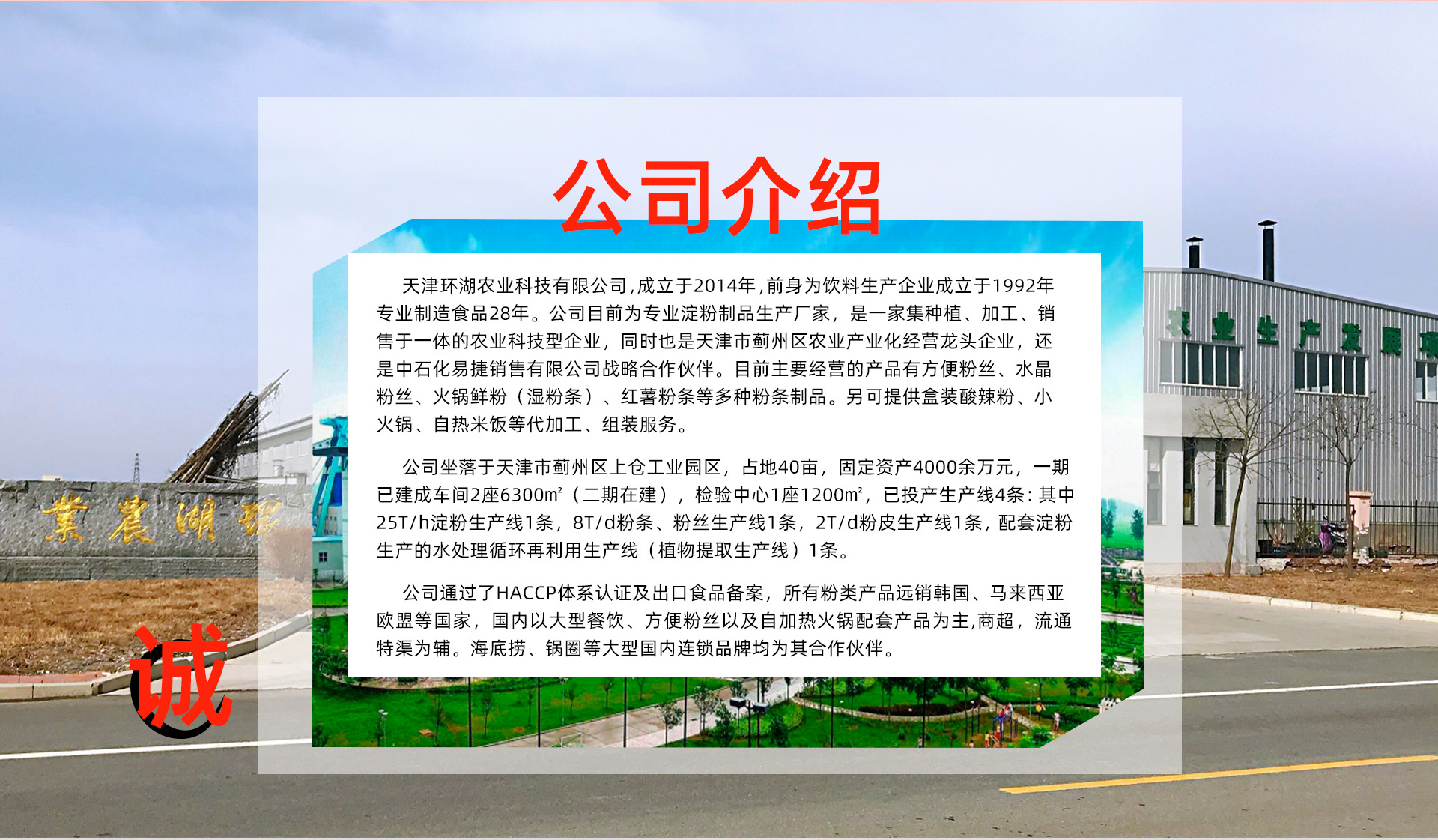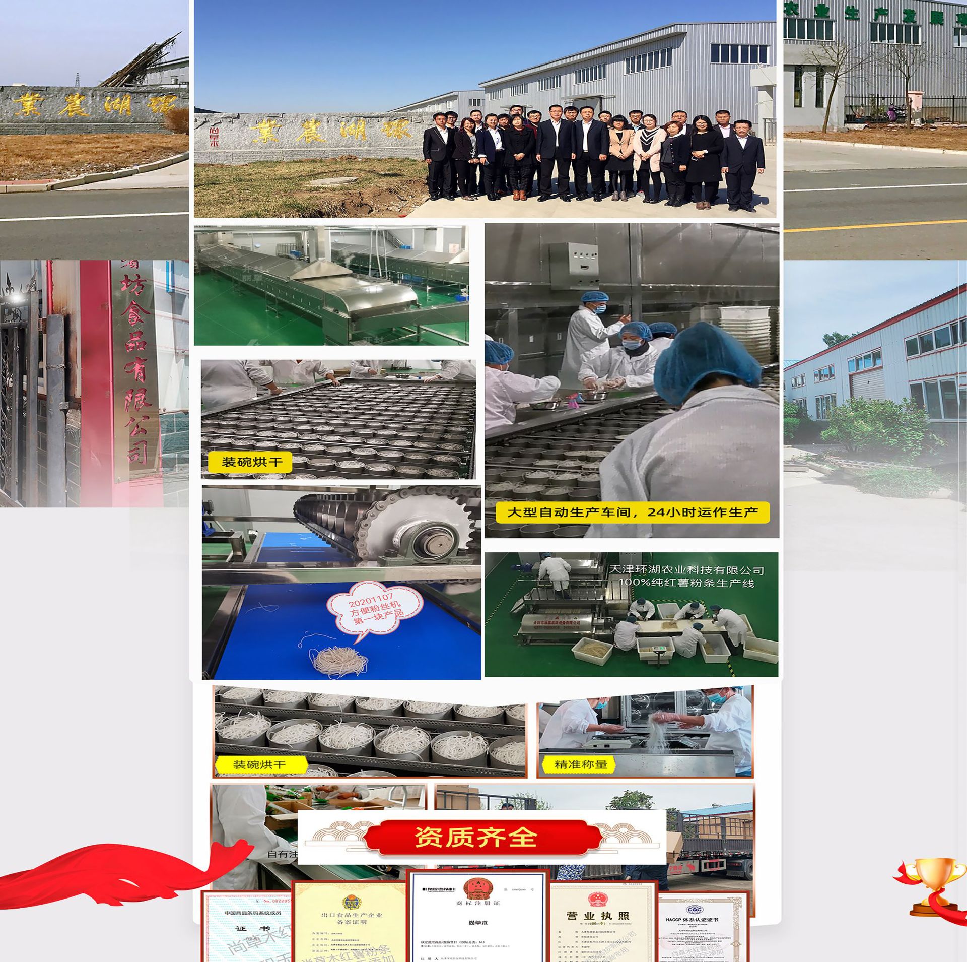 天津環(huán)湖農(nóng)業(yè)科技有限公司,成立于2014年,前身為飲料生產(chǎn)企業(yè)成立于1992年,專業(yè)制造食品28年,公司目前專業(yè)淀粉制品生產(chǎn)廠家,主要有方便粉絲、水晶粉絲、火鍋鮮粉(濕粉條)、紅薯粉條,涂布工藝,另可提供酸辣粉、小火鍋代加工、組裝服務;公司通過了HACCP體系認證,出口食品備案!