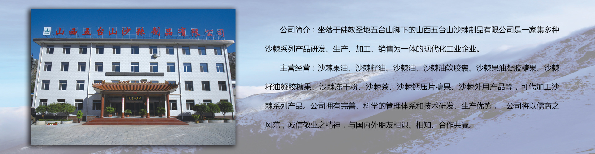 坐落于佛教五臺(tái)山腳下的山西五臺(tái)山沙棘制品有限公司是一家集多種植物精制油等系列產(chǎn)品研發(fā)、生產(chǎn)、銷售為一體的現(xiàn)代化企業(yè)。