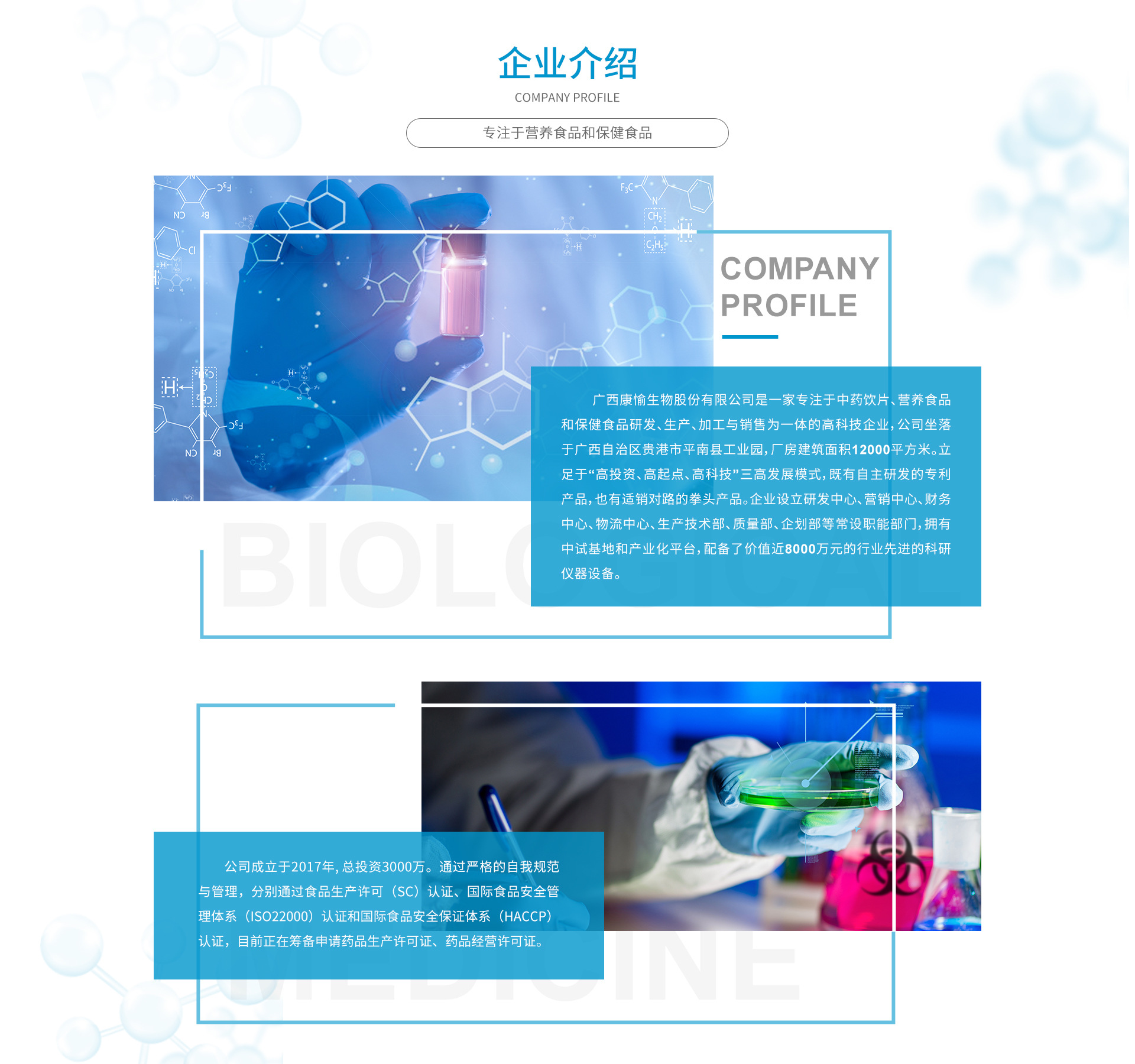 廣西康愉生物股份有限公司成立于2017-09-04,法定代表人為謝海林,注冊資本為500萬元人民幣,統(tǒng)一社會信用代碼為91450800MA5LC64N0P。企業(yè)地址位于貴港市平南縣工業(yè)園(地塊A)農(nóng)民工創(chuàng)業(yè)園內(nèi)第五棟,所屬行業(yè)為制造業(yè),經(jīng)營范圍包含:生物醫(yī)藥技術(shù)和生物醫(yī)藥制品開發(fā)、技術(shù)轉(zhuǎn)讓、咨詢;預(yù)包裝食品、保健食品、藥品、化妝品、護(hù)膚品、衛(wèi)生用品、醫(yī)藥用品、醫(yī)療器械、固體飲料、糖果、巧克力、代用茶、乳制品、發(fā)酵制品、特殊醫(yī)學(xué)用途配方食品、方便食品、中藥提取物、中藥飲片生產(chǎn)、銷售及網(wǎng)上銷售;食品原料、中藥原材料、農(nóng)副產(chǎn)品加工、銷售;商品信息咨詢;商品進(jìn)出口貿(mào)易;醫(yī)學(xué)互聯(lián)網(wǎng)信息服務(wù);中藥材種植;勞保用品的研究、設(shè)計、制造及銷售;紡織品、醫(yī)用防護(hù)服及防護(hù)用品制造、銷售。