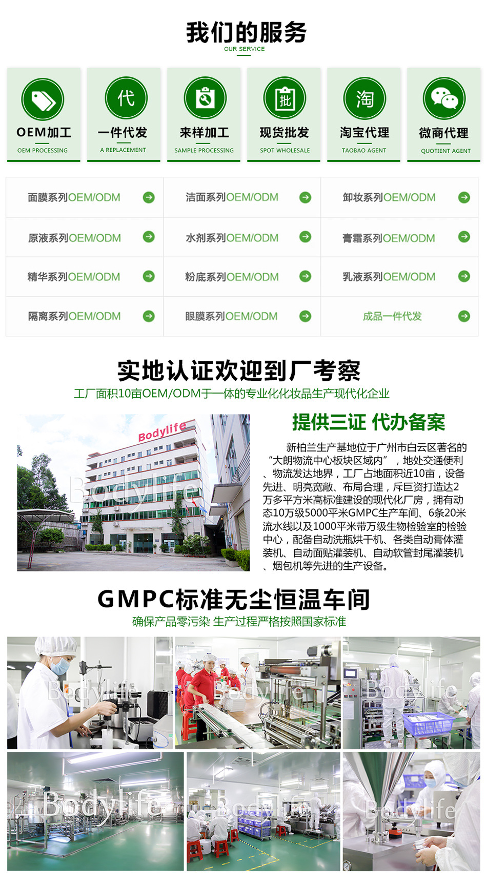 廣州市新柏蘭生物制品有限公司,行內(nèi)簡稱“新柏蘭”,是一家承接‘全球化妝品OEM/ODM代工’行業(yè)資深企業(yè)。 “新柏蘭”現(xiàn)隸屬美國Bodylife集團(tuán)公司麾下企業(yè),Bodylife起源于英皇室,以護(hù)膚宮廷秘方流傳于世界各地。 2002年Bodylife經(jīng)新加坡轉(zhuǎn)至中國廣州設(shè)立生產(chǎn)基地,這便是‘新柏蘭’的誕生。 工廠從設(shè)立之初就十分注重產(chǎn)品品質(zhì)和國外化妝品新技術(shù)的引進(jìn)和轉(zhuǎn)化工作,同時(shí)工廠本身也設(shè)立大型化妝品研發(fā)室,積極探索推進(jìn)在天然植物化妝品的研發(fā),碩果累累。