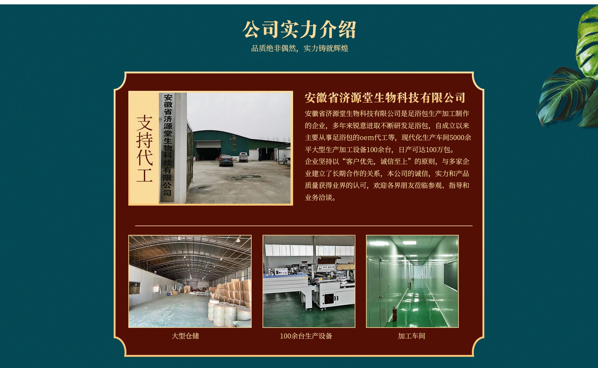安徽省濟(jì)源堂生物科技有限公司是等產(chǎn)品專業(yè)生產(chǎn)加工的公司,相關(guān)證件齊全;廠房5000平方;日產(chǎn)一百萬包;擁有完整、科學(xué)的質(zhì)量管理體系。安徽省濟(jì)源堂生物科技有限公司的誠信、實(shí)力和產(chǎn)品質(zhì)量獲得業(yè)界的認(rèn)可。歡迎各界朋友蒞臨參觀、指導(dǎo)和業(yè)務(wù)洽談。
