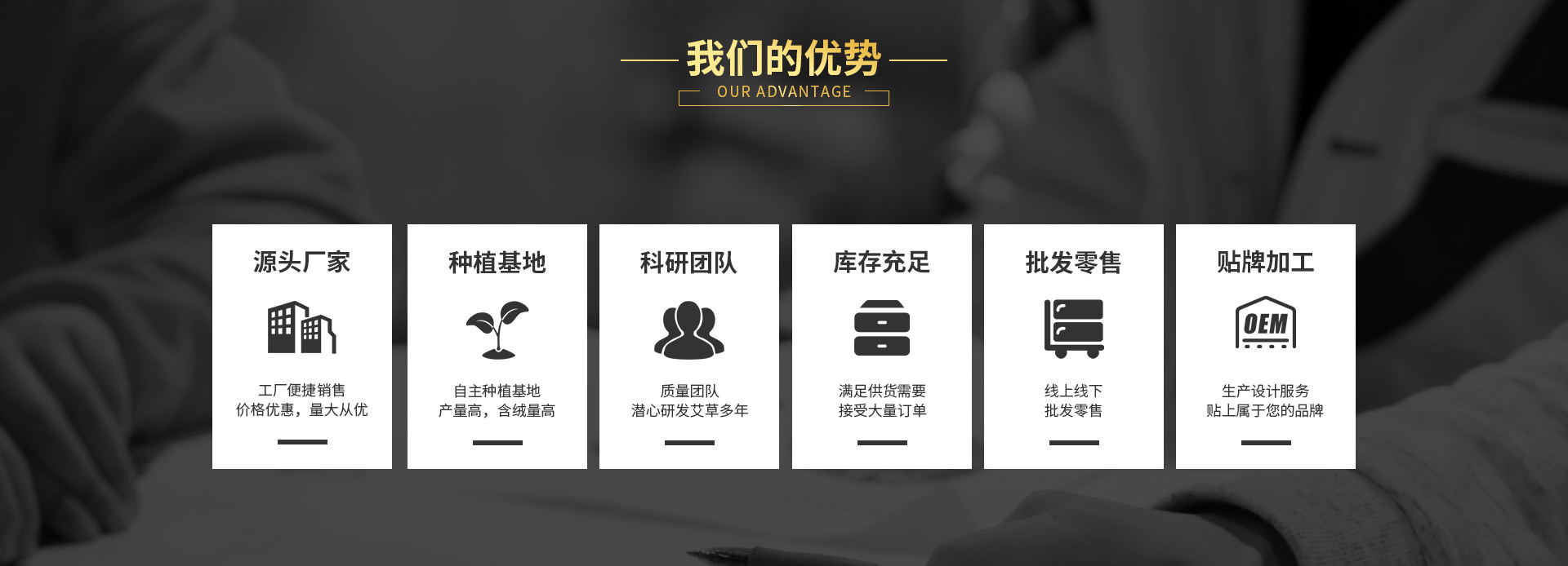 南陽市艾倍健艾制品有限公司是艾條、艾柱、艾絨、艾餅、艾灸器具、艾灸布藝、艾灸貼等產(chǎn)品專業(yè)生產(chǎn)加工的公司,擁有完整、科學的質(zhì)量管理體系。南陽市艾倍健艾制品有限公司的誠信、實力和產(chǎn)品質(zhì)量獲得業(yè)界的認可。歡迎各界朋友蒞臨參觀、指導和業(yè)務洽談。