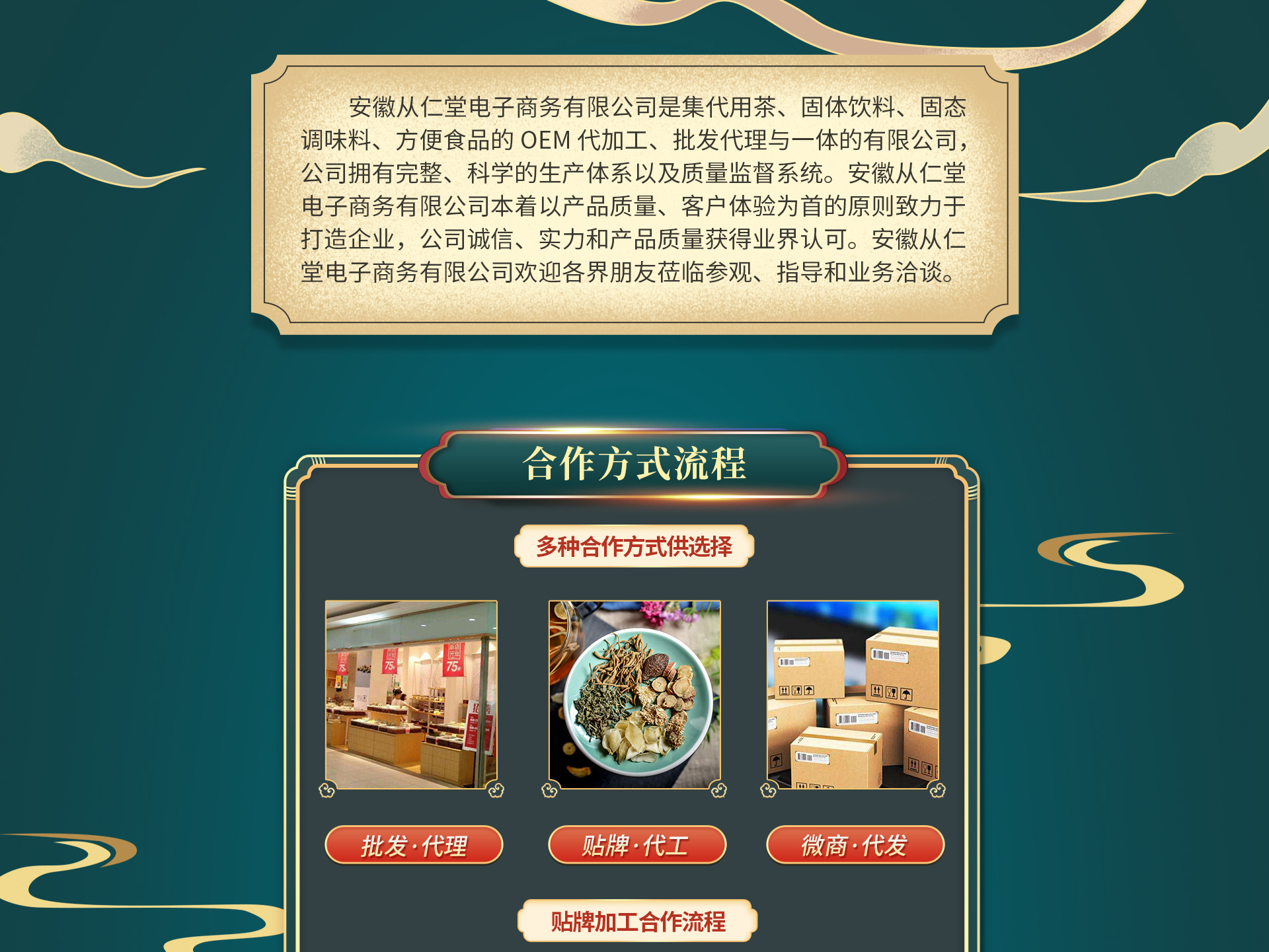安徽從仁堂電子商務(wù)有限公司是集代用茶、固體飲料、固態(tài)調(diào)味料、方便食品的OEM代加工、批發(fā)代理與一體的有限公司,公司擁有完整、科學(xué)的生產(chǎn)體系以及質(zhì)量監(jiān)督系統(tǒng)。安徽從仁堂電子商務(wù)有限公司本著以產(chǎn)品質(zhì)量、客戶體驗(yàn)為首的原則致力于打造百年企業(yè),公司誠信、實(shí)力和產(chǎn)品質(zhì)量獲得業(yè)界認(rèn)可。安徽從仁堂電子商務(wù)有限公司歡迎各界朋友蒞臨參觀、指導(dǎo)和業(yè)務(wù)洽談。