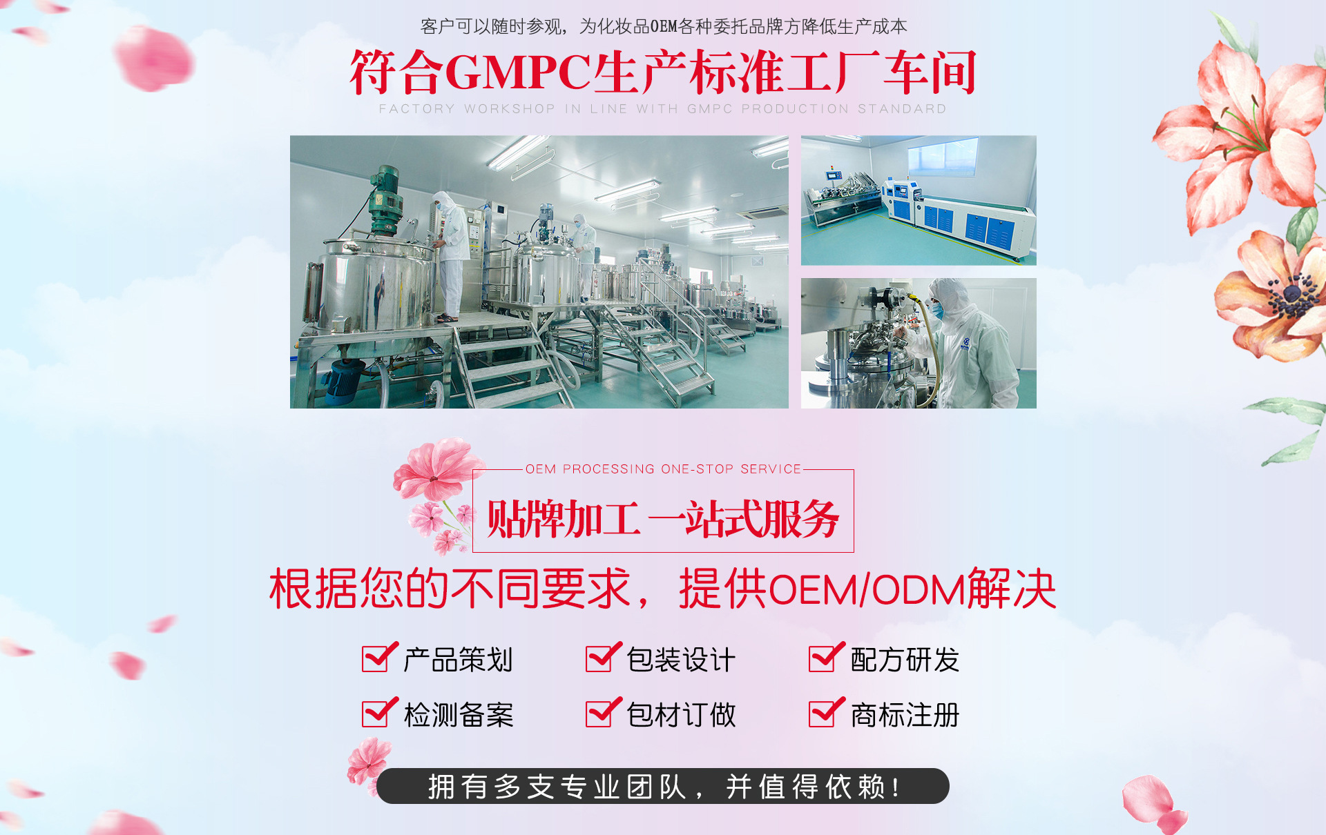 廣州艾儷妝思化妝品有限公司,成立于2008年,坐落于廣州白云區(qū)占地面積三千多平米。艾儷妝思化妝品是一家國際領(lǐng)先的化妝品品牌輸出基地,專為國際性化妝品品牌提供加工的平臺,為客戶提供個性化的OEM/ODM服務(wù)。涵蓋商標注冊、產(chǎn)品規(guī)劃、配方開發(fā)、包裝設(shè)計、功效測試、乳化、灌裝、包裝、倉儲物流等服務(wù),是一家集研發(fā)、生產(chǎn)及銷售策劃為一體的專業(yè)化妝品OEM/ODM加工服務(wù)企業(yè)。 廣州艾儷妝思化妝品有限公司始終秉承“創(chuàng)新、共贏”的核心價值觀,以“創(chuàng)造客戶市場價值,推動行業(yè)持續(xù)發(fā)展”為己任,堅持“質(zhì)量保證、服務(wù)為先、效率至上”的管理理念,提供“貼心、精心、耐心”的服務(wù),不斷進行技術(shù)創(chuàng)新,研發(fā)安全的高品質(zhì)產(chǎn)品,為客戶實現(xiàn)品牌價值和市場價值。 廣州艾儷妝思化妝品有限公司,作為有化妝品生產(chǎn)許可證的生產(chǎn)廠家,全流程為客戶提供蠶絲面膜、水乳膏霜、洗發(fā)沐浴露、精油系列等的代加工/貼牌服務(wù)。