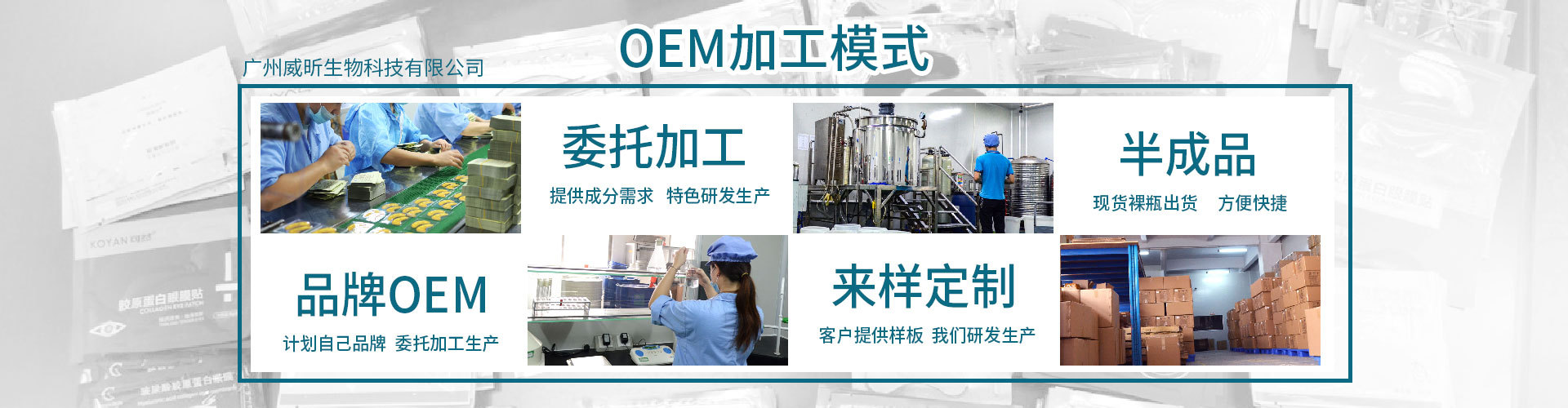 廣州威昕生物科技有限公司是眼部護(hù)理、面膜、眼霜、面霜等產(chǎn)品專業(yè)生產(chǎn)加工的公司,擁有完整、科學(xué)的質(zhì)量管理體系。廣州威昕生物科技有限公司的誠信、實(shí)力和產(chǎn)品質(zhì)量獲得業(yè)界的認(rèn)可。歡迎各界朋友蒞臨參觀、指導(dǎo)和業(yè)務(wù)洽談。