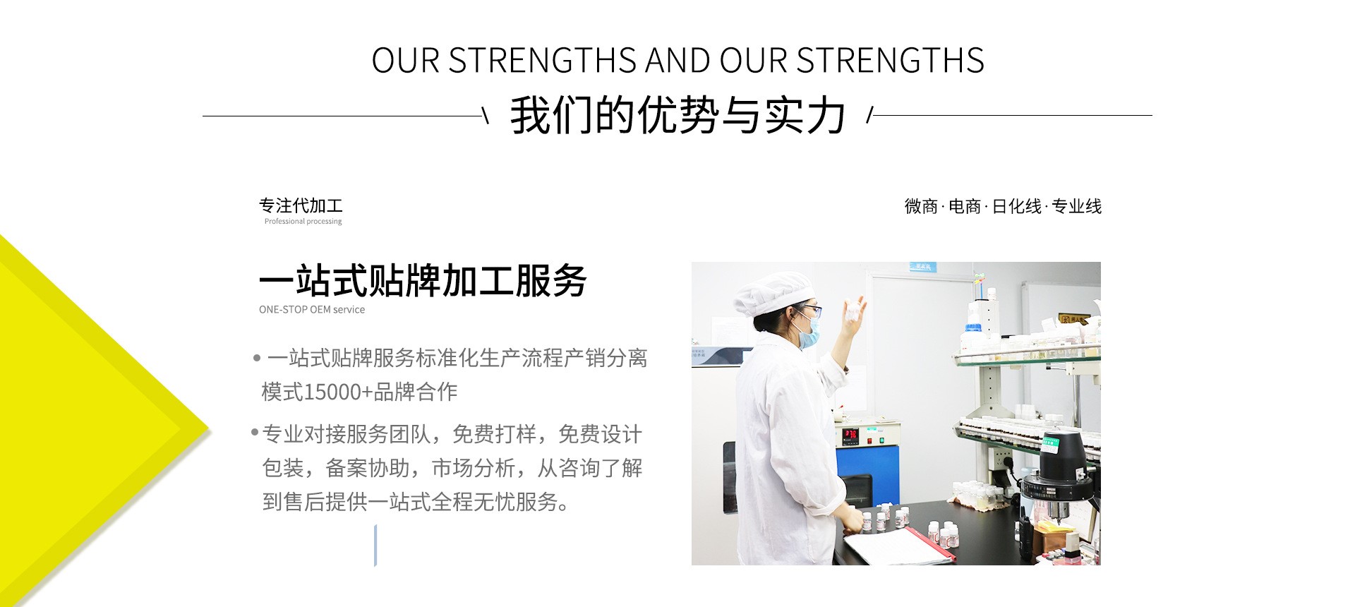 廣州眾禮新材料有限公司是一家集研發(fā)、生產(chǎn)、銷售為一體的化妝品制造工廠,秉承“安全有效““人無我有”“人有我優(yōu)”的經(jīng)營理念,主營面膜、私處保養(yǎng)、女性私護(hù)產(chǎn)品、妝字號產(chǎn)品、消字號產(chǎn)品等產(chǎn)品專業(yè)生產(chǎn)加工的公司,擁有完整、科學(xué)的質(zhì)量管理體系。廣州眾禮新材料有限公司的誠信、實(shí)力和產(chǎn)品質(zhì)量獲得業(yè)界的認(rèn)可。歡迎各界朋友蒞臨參觀、指導(dǎo)和業(yè)務(wù)洽談。兩大生產(chǎn)基地、十萬級凈化車間、歐盟GMP標(biāo)準(zhǔn)工廠,為多家品牌提供穩(wěn)定、可靠的加工定制,成立以來為美容院、微商團(tuán)隊(duì)以及線上線下客戶等提供OEM代加工服務(wù),歡迎廣大客戶咨詢服務(wù)。