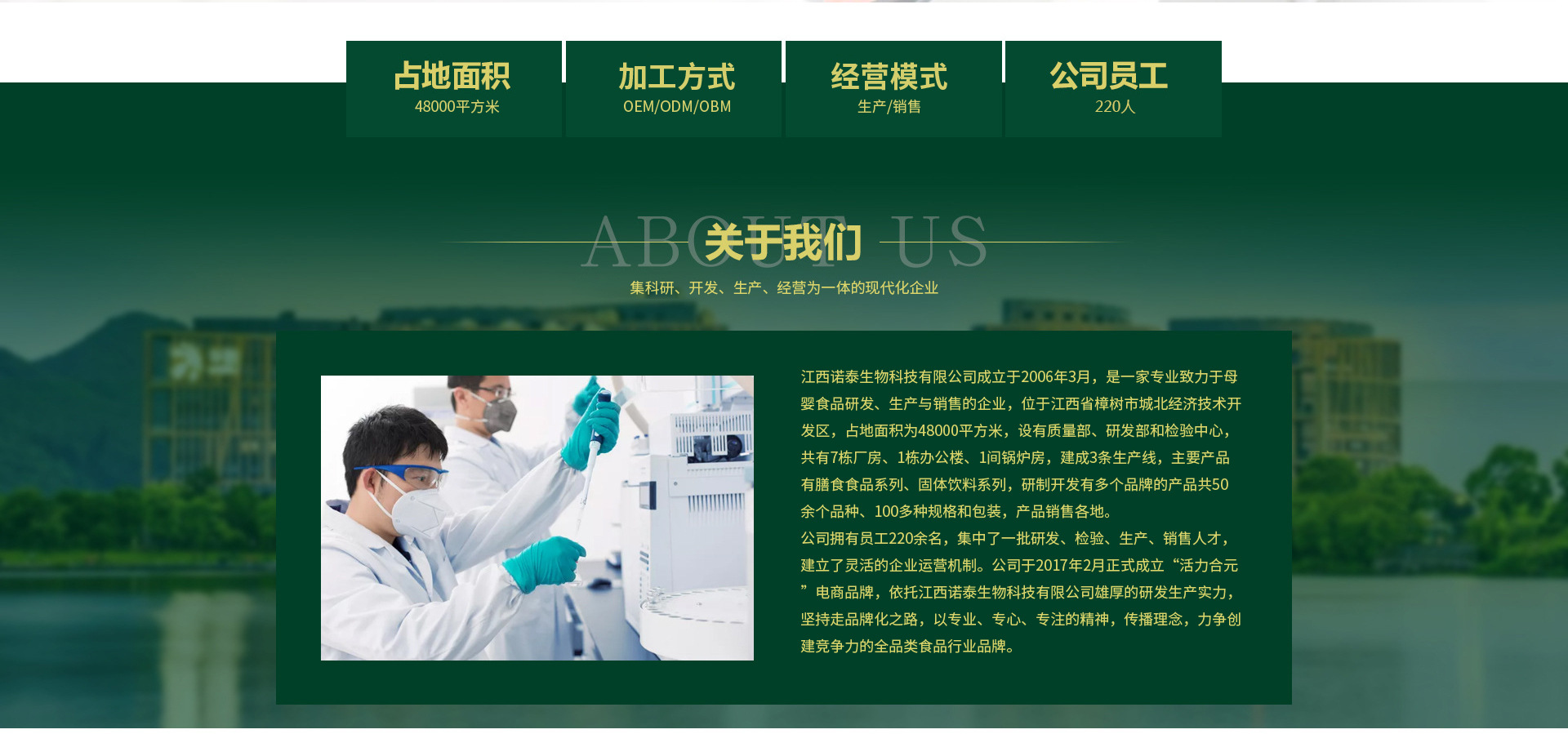 江西諾泰生物科技有限公司專業(yè)致力于嬰幼兒特殊膳食食品及各類功能營(yíng)養(yǎng)食品的研發(fā)、生產(chǎn)及銷售為一體的現(xiàn)代化健康企業(yè),為孕、嬰、童提供科學(xué)、精確的營(yíng)養(yǎng)補(bǔ)充產(chǎn)品。公司位于美麗的贛鄱大地——樟樹市城北經(jīng)濟(jì)技術(shù)開發(fā)區(qū),于2006年投資達(dá)8600萬,占地面積約3萬平方米,擁有國(guó)內(nèi)最先進(jìn)的滾筒式工藝米片生產(chǎn)線、純植物提取濃縮工藝生產(chǎn)線等大型設(shè)備及擁有國(guó)家質(zhì)量安全QS認(rèn)證車間、GMP藥品標(biāo)準(zhǔn)廠房、10萬級(jí)無污染潔凈車間、原料檢測(cè)室、實(shí)驗(yàn)室等。從原料、配方、生產(chǎn)、管理到服務(wù)層層把關(guān),多方面確保產(chǎn)品質(zhì)量,打造全程有機(jī)產(chǎn)品。