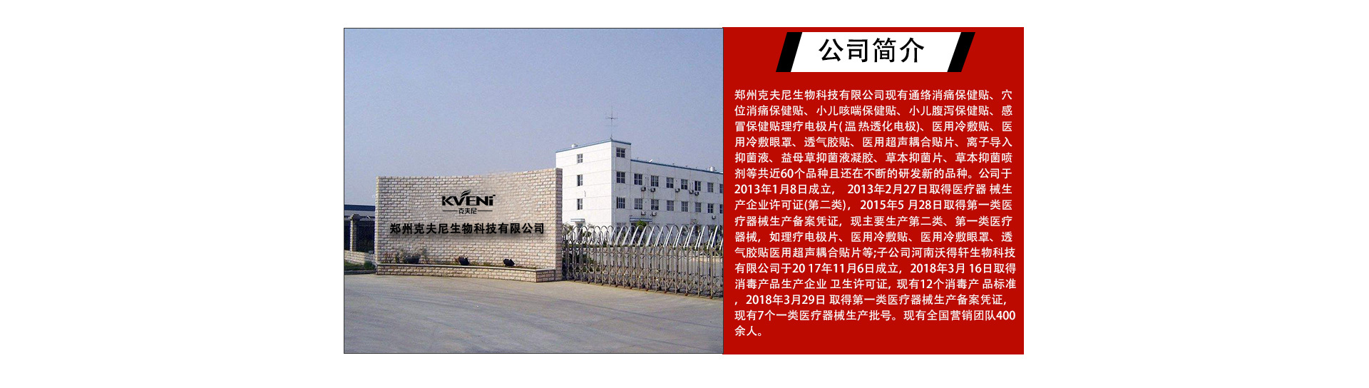 河南郝先生醫(yī)療器械有限公司(原鄭州百年同仁醫(yī)療器械有限公司),成立于2010年4月27H,公司下屬有河 南沃得軒生物科技有限公司,鄭州克夫尼生物科技有限公司、新野縣博強醫(yī)療科技有限公司三個子公司,現(xiàn)有員工 八百余人,集膏藥、第一、二類醫(yī)療器械、消毒產(chǎn)品等系列產(chǎn)品的研發(fā)、生產(chǎn)與銷售于一體,現(xiàn)公司擁有完善的產(chǎn) 品研發(fā)科研團隊,其中高級工程師5人,高級技術顧問7人,中級工程師25人,全國營銷團隊400余人。 郝先生系列貼敷產(chǎn)品配方來源于公司的兩位膏藥傳承人提供的百年傳承秘方為基礎,結合現(xiàn)代膏藥生產(chǎn)工藝和 公司研發(fā)團隊和三位名老中醫(yī)教授,中醫(yī)學術帶頭人的指導,生產(chǎn)出疔效顯著、配方獨特的郝先生牌系列貼敷產(chǎn) 品。經(jīng)過多年的市場反饋,療效突出,得到了市場和患者的一致好評。