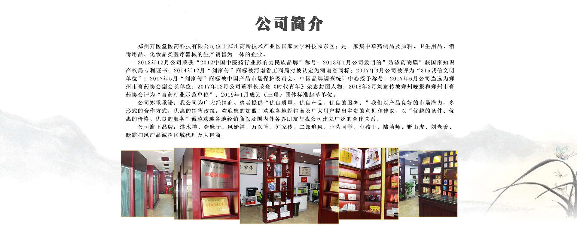 鄭州萬(wàn)醫(yī)堂醫(yī)藥科技有限公司是一家集醫(yī)藥產(chǎn)品、消毒用品、化妝品、醫(yī)療器械的研發(fā)、生產(chǎn)、銷(xiāo)售為一體,以技術(shù)服務(wù)、技術(shù)咨詢?yōu)楫a(chǎn)業(yè)核心,以掌控知識(shí)產(chǎn)權(quán)入手、以醫(yī)藥科研為主的企業(yè),主打品牌“劉家傳”骨病系列外用產(chǎn)品,以療效顯著、品質(zhì)穩(wěn)定深得消費(fèi)者好評(píng)。 在2012年12月份,由中國(guó)醫(yī)藥衛(wèi)生行業(yè)協(xié)會(huì)聯(lián)合中國(guó)民族醫(yī)藥開(kāi)發(fā)委員會(huì)、中國(guó)醫(yī)藥企業(yè)協(xié)會(huì)等單位12月17日在京舉辦“2012年度全國(guó)醫(yī)藥衛(wèi)生行業(yè)創(chuàng)新峰會(huì)/2012中國(guó)民族醫(yī)藥創(chuàng)新發(fā)展年會(huì)”上,被評(píng)為“2012中國(guó)民族醫(yī)藥最具影響力自主創(chuàng)新品牌、2012中國(guó)中醫(yī)藥行業(yè)最具影響力民族品牌”,這是公司發(fā)展過(guò)程中,得到了行業(yè)協(xié)會(huì)的認(rèn)可,公司的公信力和品牌力得到了提升,我們相信,在未來(lái)的競(jìng)爭(zhēng)過(guò)程中,一定會(huì)立于不敗之地。