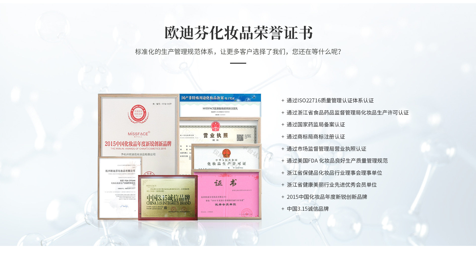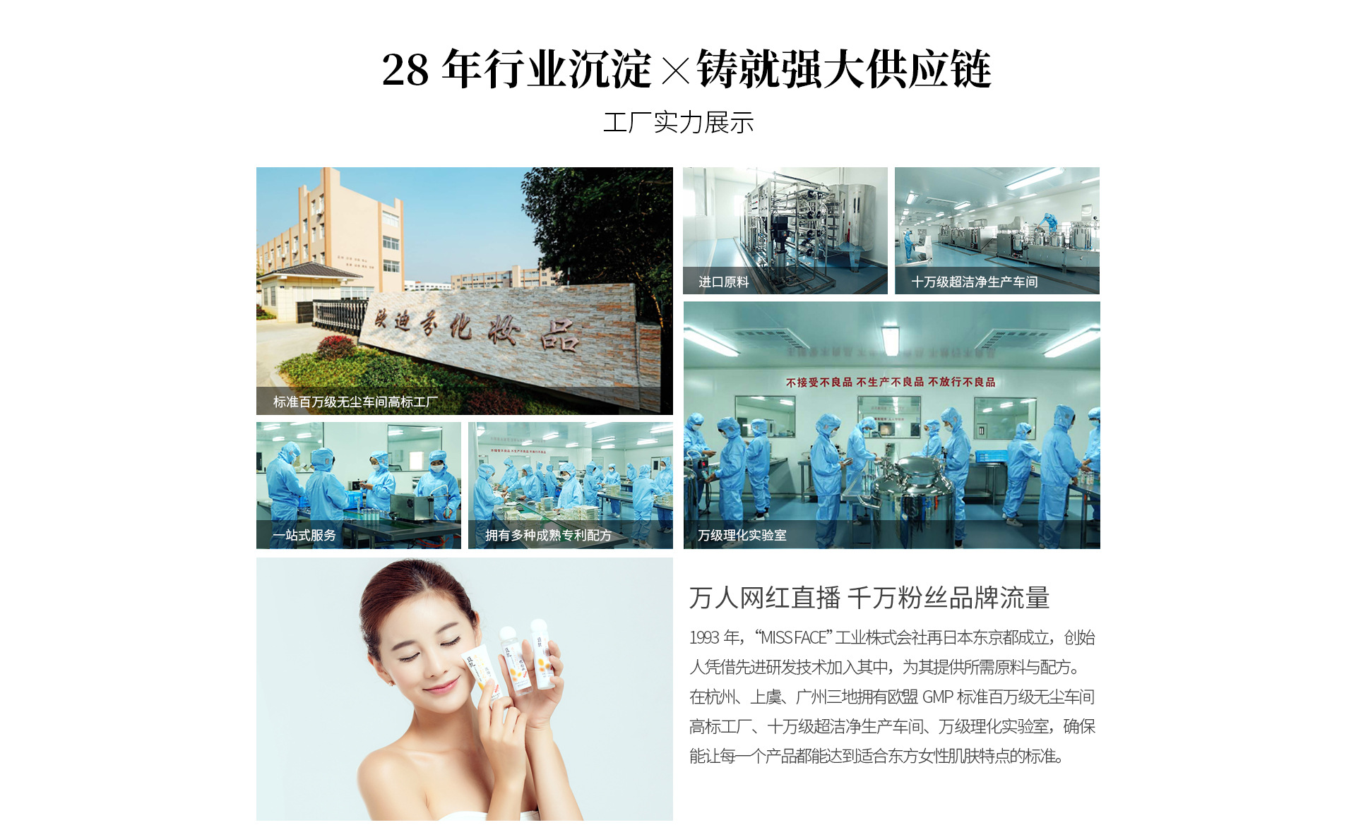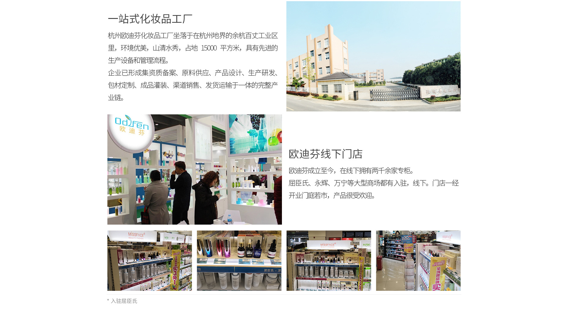 杭州歐迪芬化妝品工廠坐落于在杭州地界的余杭百丈工業(yè)區(qū)里,環(huán)境優(yōu)美,山清水秀,占地15000平方米。擁有十萬級凈化無塵車間,工廠的生產(chǎn)制作間生產(chǎn)環(huán)境完全按照準(zhǔn)藥品的生產(chǎn)標(biāo)準(zhǔn)GMPC的高規(guī)格來建造,確保了空氣潔凈、環(huán)境衛(wèi)生、布局合理、物流暢通、生產(chǎn)安全 工廠具有先進(jìn)的生產(chǎn)設(shè)備和管理流程,每一位員工遵守嚴(yán)肅思考,嚴(yán)密操作的生產(chǎn)標(biāo)語,確保能讓每一個產(chǎn)品都能達(dá)到適合東方女性肌膚特點(diǎn)的標(biāo)準(zhǔn)。 出來的每一個產(chǎn)品都是經(jīng)過每位員工的辛勤勞作、精準(zhǔn)檢測而來的,認(rèn)真執(zhí)行“不接受不良品,不生產(chǎn)不良品,不放行不良品”的生產(chǎn)態(tài)度。 歐迪芬專注以食養(yǎng)膚的理念,遵循現(xiàn)代人崇尚自然,回歸自然的護(hù)膚品牌。 歐迪芬認(rèn)為“由內(nèi)而外流露出的肌膚健康之美”是我們的追求,在發(fā)展過程中始終堅(jiān)持美麗與健康并存的理念,以客戶為導(dǎo)向,堅(jiān)持以天然、安全的配方成分“打動”肌膚。貼心服務(wù)每一位顧客,在高層次上打造品牌持久影響力。