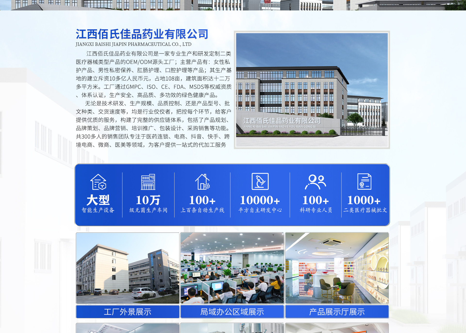 江西佰氏佳品藥業(yè)有限公司是一家專業(yè)生產(chǎn)和研發(fā)定制妝字號/消字號/械字號類型產(chǎn)品的加工廠,源頭實力廠家;主營產(chǎn)品有:健康養(yǎng)生產(chǎn)品系列:nmn凝膠、康膜、草本植物精油、活力霜平衡霜、中草藥油、泥灸、黑膏藥、艾草貼等;女性私護產(chǎn)品系列:私密縮陰液、婦科凝膠、婦科膠囊、洗液慕斯、粉劑、片劑、衛(wèi)生巾雪蓮貼護墊等產(chǎn)品;男性私密產(chǎn)品系列:延時噴劑、私護洗液、修護膏、能量咖啡、補腎片等;