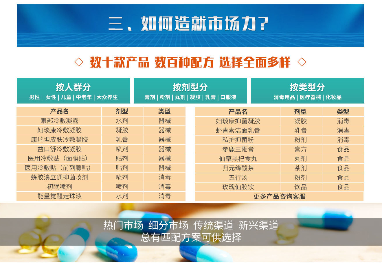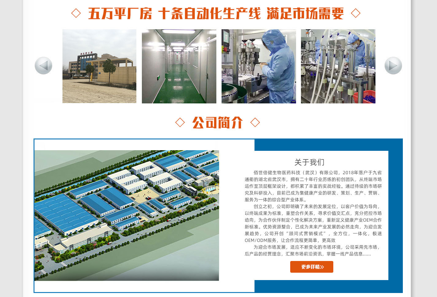 佰世倍健生物醫(yī)藥科技(武漢)有限公司,2018年落戶于九省通衢的湖北省武漢市,擁有二十年行業(yè)歷練的初創(chuàng)團隊,從終端市場運作至頂層框架設計,都積累了豐富的實戰(zhàn)經驗。通過待續(xù)的市場研究及科研投入,目前已成為集健康產業(yè)的研發(fā)、策劃、生產、營銷、服務為一體的綜合型產業(yè)體系。 創(chuàng)立之初,公司即明確了未來的發(fā)展定位,以客戶價值為導向,以終端成果為標準,重塑合作關系,尋求價值交匯點,充分把控市場動向,為合作伙伴制定個性化解決方案,重新定義健康產業(yè)OEM合作新標準。優(yōu)勢資源整合,已成為未來產業(yè)發(fā)展的必然走向,為迎合發(fā)展趨勢,公司開創(chuàng)“顧問式營銷模式”,全方位,一體化,極速OEM/ODM服務,讓合作流程更簡單,更高效。