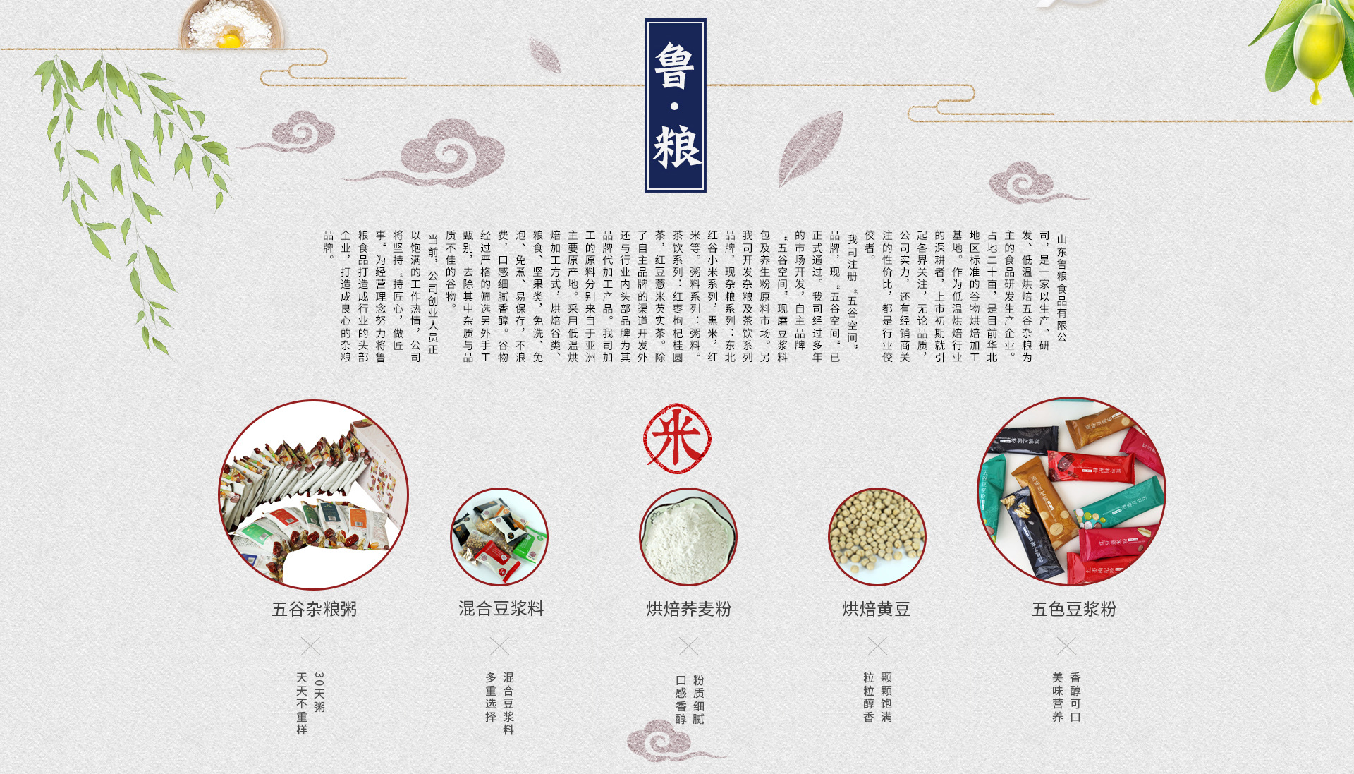 山東魯糧食品有限公司,是一家以生產(chǎn)、研發(fā)、低溫烘焙五谷雜糧為主的食品研發(fā)生產(chǎn)企業(yè)。注冊資金1000萬元,占地13000余平,是目前華北地區(qū)標(biāo)準(zhǔn)的谷物烘焙加工基地。我司擁有“五谷空間”品牌,現(xiàn)“五谷空間”已正式通過商標(biāo)認(rèn)證。我司經(jīng)過多年的市場開發(fā),自主品牌“五谷空間”現(xiàn)磨豆?jié){料包及養(yǎng)生粉原料市場,產(chǎn)品渠道輻射全國。除了自主品牌的渠道開發(fā)外還與行業(yè)內(nèi)知名品牌達(dá)成合作,為其品牌代理加工產(chǎn)品。 另我司開發(fā)雜糧及茶飲系列品牌,現(xiàn)雜糧系列:東北紅谷小米系列,黑米,紅米等。粥料系列:粥料。茶飲系列:紅棗枸杞桂圓茶,紅豆薏米芡實茶。除了自主品牌的渠道開發(fā)外還與行業(yè)內(nèi)知名品牌達(dá)成合作,為其品牌代理加工產(chǎn)品。我司加工的原料分別來自于亞洲優(yōu)質(zhì)原產(chǎn)地,各類谷物經(jīng)過精挑細(xì)選,手工甄別,去除其中雜志與品質(zhì)不佳的谷物,各類谷物都是上乘佳品。
