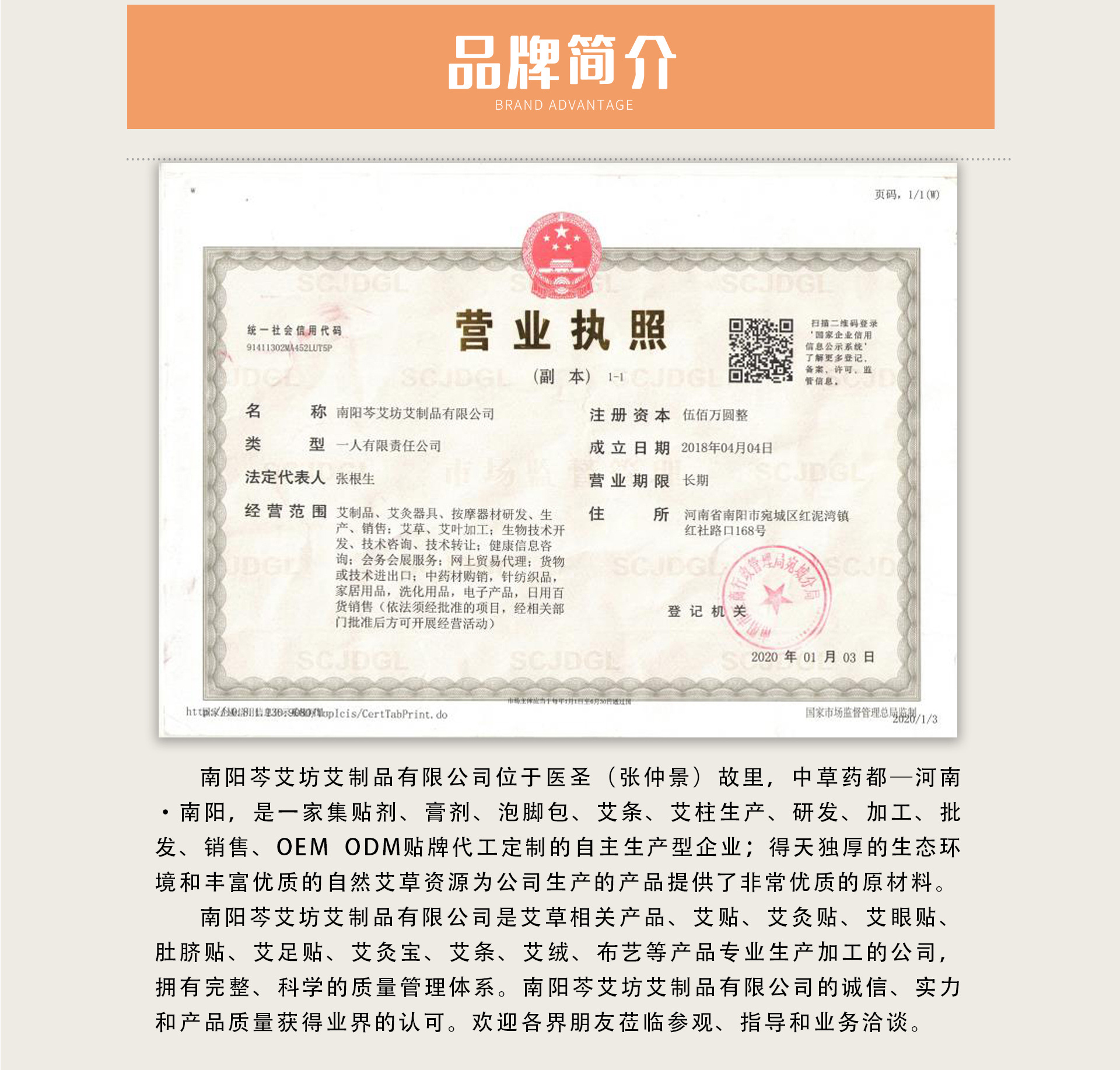 南陽芩艾坊艾制品有限公司是艾草相關(guān)產(chǎn)品、艾貼、艾灸貼、艾眼貼、肚臍貼、艾足貼、艾灸寶、艾條、艾絨、布藝等產(chǎn)品專業(yè)生產(chǎn)加工的公司,擁有完整、科學的質(zhì)量管理體系。南陽芩艾坊艾制品有限公司的誠信、實力和產(chǎn)品質(zhì)量獲得業(yè)界的認可。歡迎各界朋友蒞臨參觀、指導和業(yè)務洽談