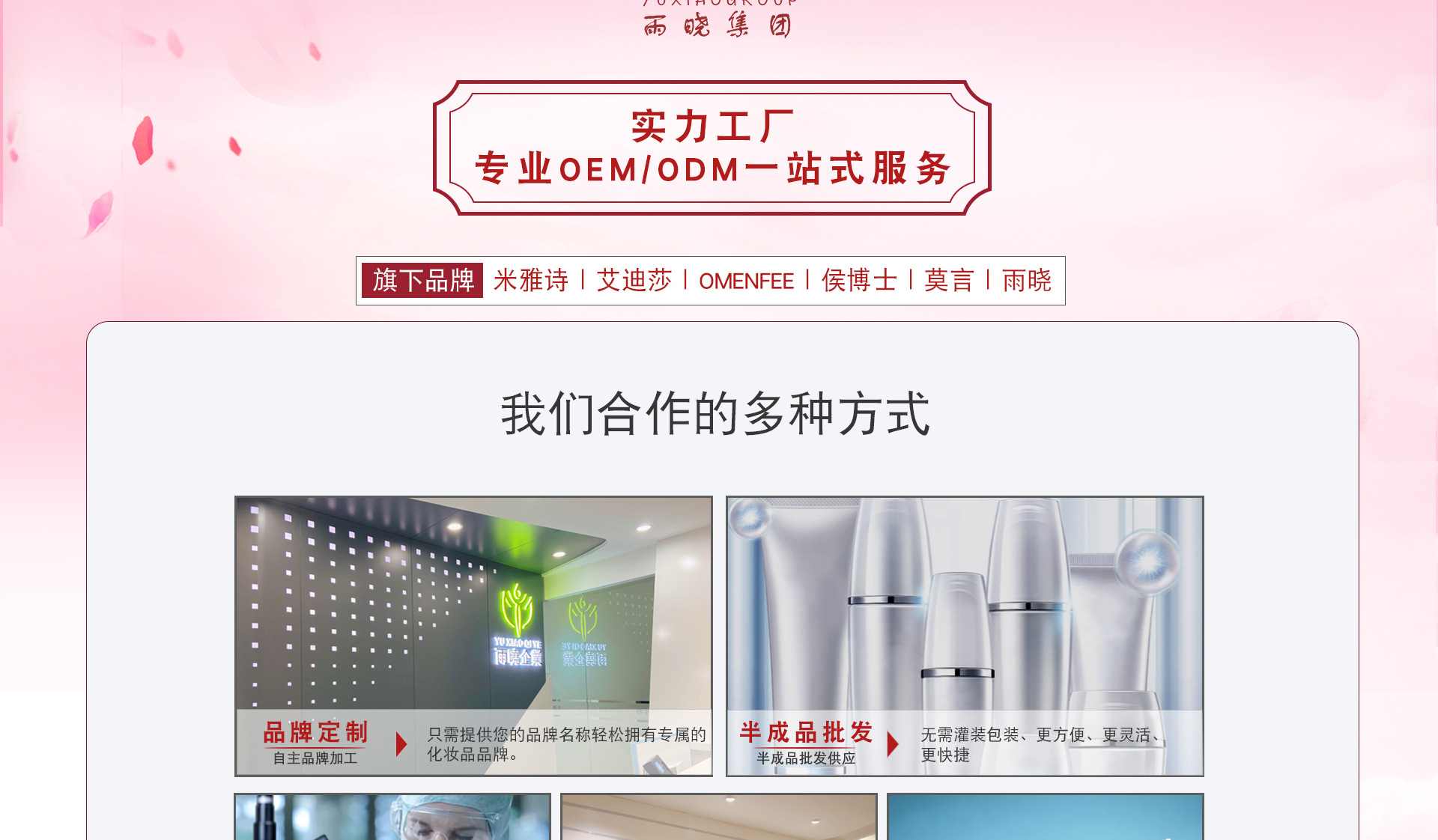 廣州雨曉生物制品有限公司,創(chuàng)立于1999年,是一家集生物研發(fā)、生產、銷售于一體的高科技生物制品企業(yè),坐落在廣州市白云區(qū)帽峰山下,秀山麗水,有繁華世界世外桃源之美稱,廠區(qū)占地面積4000余平方米,生產車間按照高潔凈凈化生產車間國際化生產藥品的標準構建,且率先通過美國FDA、歐盟GMPC、ISO22716化妝品良好生產規(guī)范等認證配,合卓越的生產管理,7條流水線日均產量高達7萬支(片),是一家以藥品標準要求生產化妝品的企業(yè),公司以生物科技為依托,以市場為導向,以質量求生存。 我們致力于研究真正能改變皮膚狀態(tài),改善皮膚微循環(huán)、便于人體吸收、及產生天然生物效果,使用國際高精技術提煉手法,產品自問世以來深受社會各階人士的喜愛!迅速開創(chuàng)市場,得到了海內、外各界人士的廣泛厚愛與認可!我們的誠信、實力和產品質量獲得業(yè)界的認可,擁有完整、科學的質量管理體系;歡迎各界朋友蒞臨參觀、指導和業(yè)務洽談。