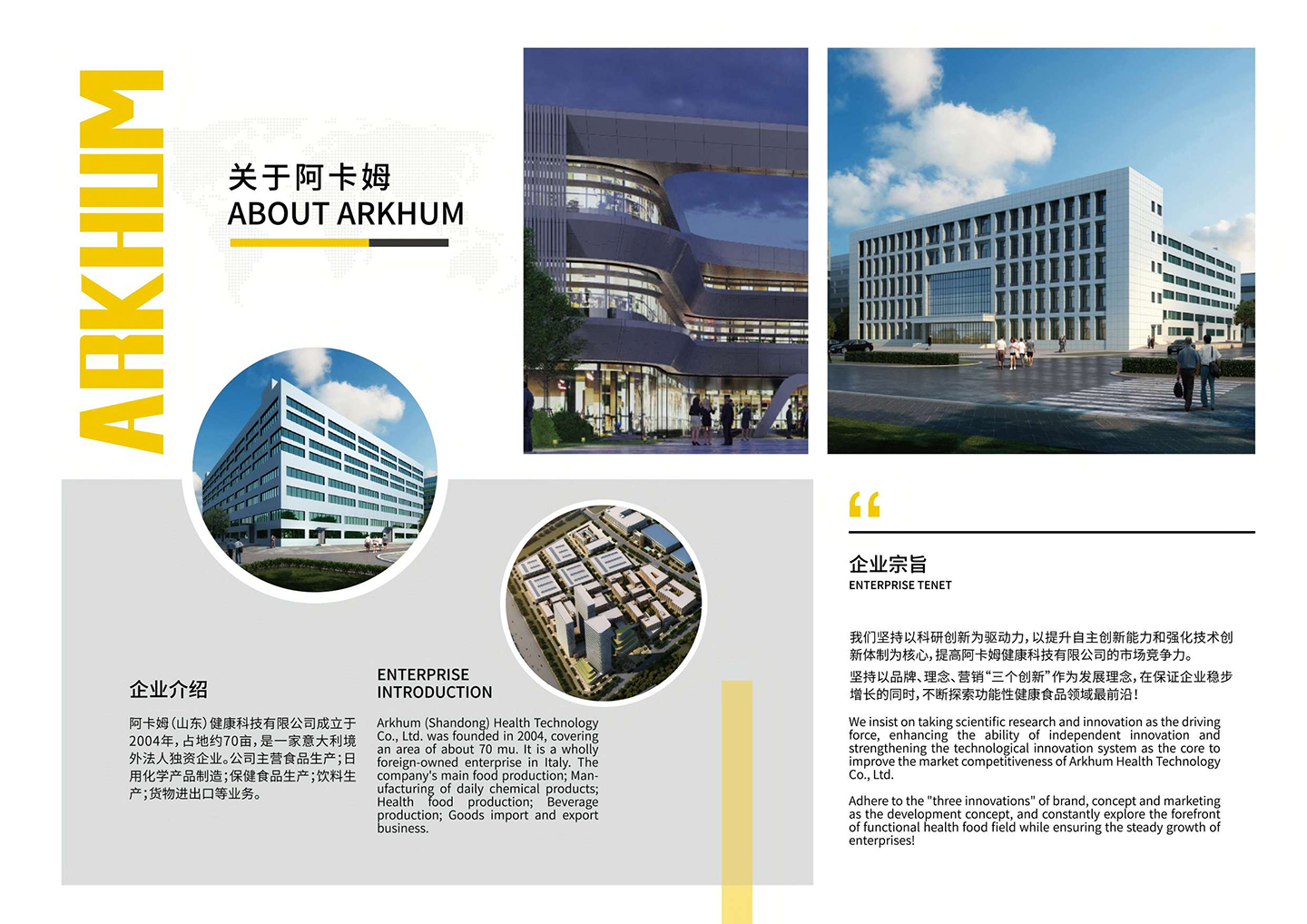 阿卡姆(山東)健康科技有限公司依托于意大利方舟公司(ARK SRL)的先進(jìn)生產(chǎn)管理理念,與中科院煙臺海岸帶研究所、山東省農(nóng)業(yè)科學(xué)院以及齊魯醫(yī)學(xué)院等多家權(quán)威科研機構(gòu)與高等院校達(dá)成戰(zhàn)略合作關(guān)系。借助其一流的研發(fā) 技術(shù)與創(chuàng)新成果,幫助企業(yè)實現(xiàn)“成為一家專業(yè)一流的功能性健康食品生產(chǎn)企業(yè)”的階段性目標(biāo)。