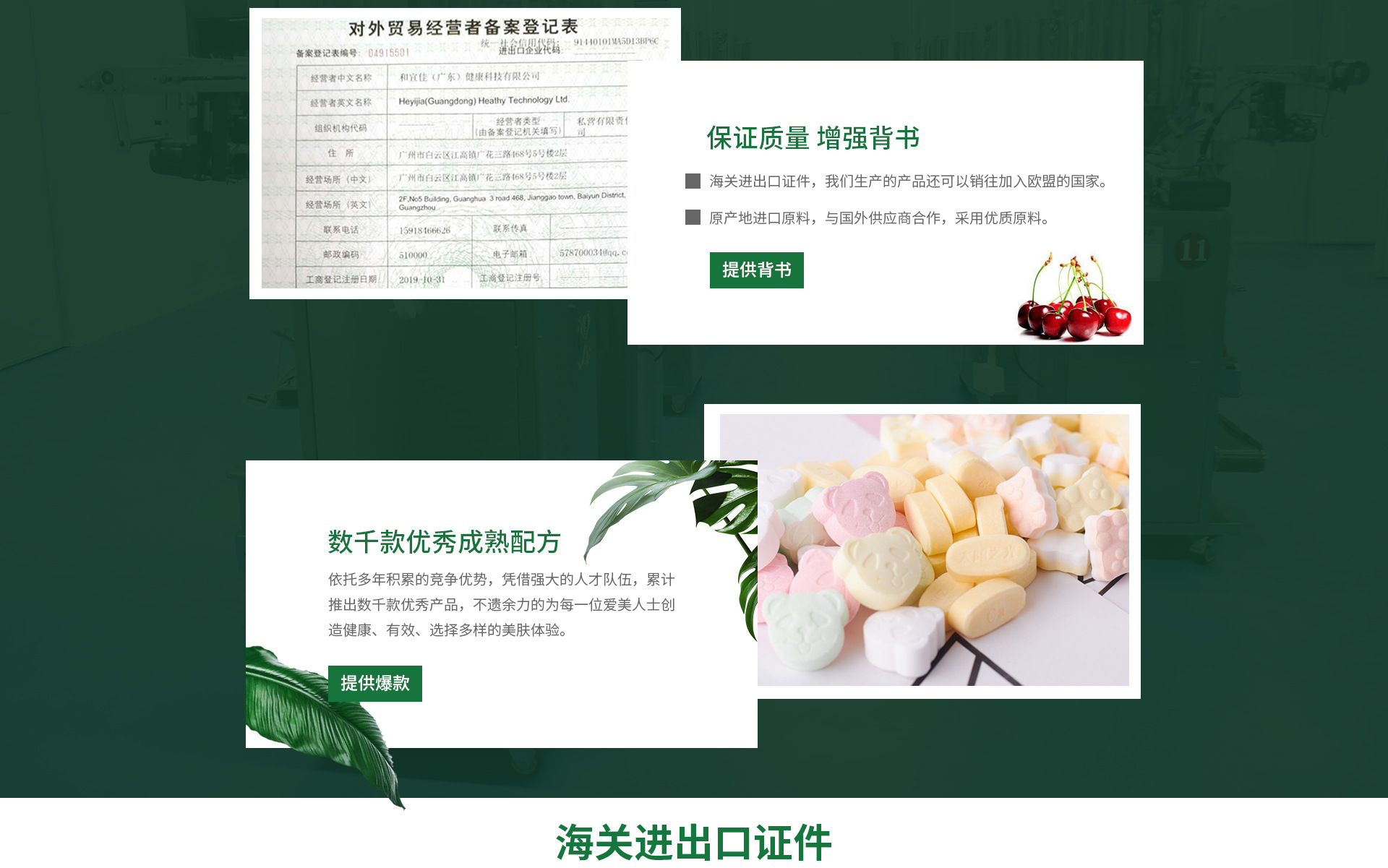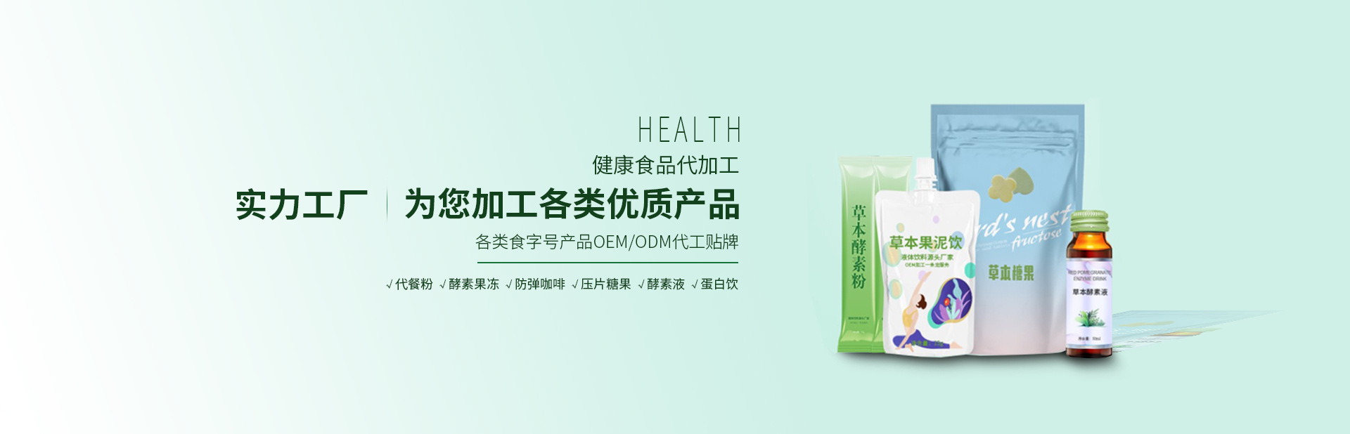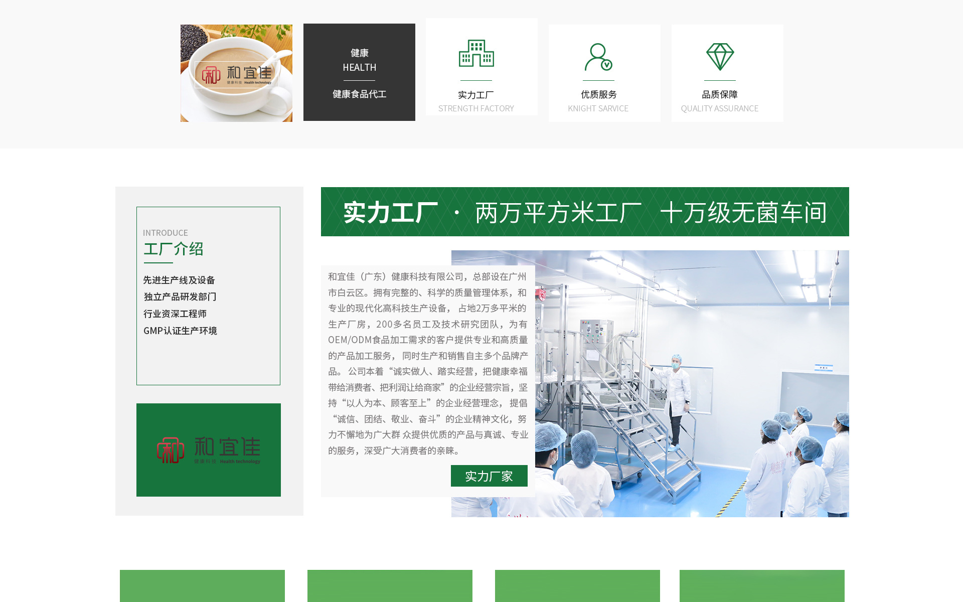 和宜佳(廣東)健康科技有限公司,總部設在廣州市白云區(qū)。擁有完整的、科學的質(zhì)量管理體系;專業(yè)的現(xiàn)代化高科技生產(chǎn)設備, 2萬多平米的生產(chǎn)廠房,200多名員工和技術(shù)研究團隊;和宜佳為有 OEM/ODM食品加工需求的客戶提供專業(yè)和高質(zhì)量的產(chǎn)品加工服務, 同時生產(chǎn)和銷售多個自主品牌產(chǎn)品。 公司本著“誠實做人、踏實經(jīng)營,把健康幸福帶給消費者、把利潤讓給商家”的企業(yè)經(jīng)營宗旨,堅持“以人為本、顧客至上”的企業(yè)經(jīng)營理念, 提倡“誠信、團結(jié)、敬業(yè)、奮斗”的企業(yè)精神文化,努力不懈地為廣大群 眾提供優(yōu)質(zhì)的產(chǎn)品與真誠、專業(yè)的服務,從而深受廣大消費者的親睞。